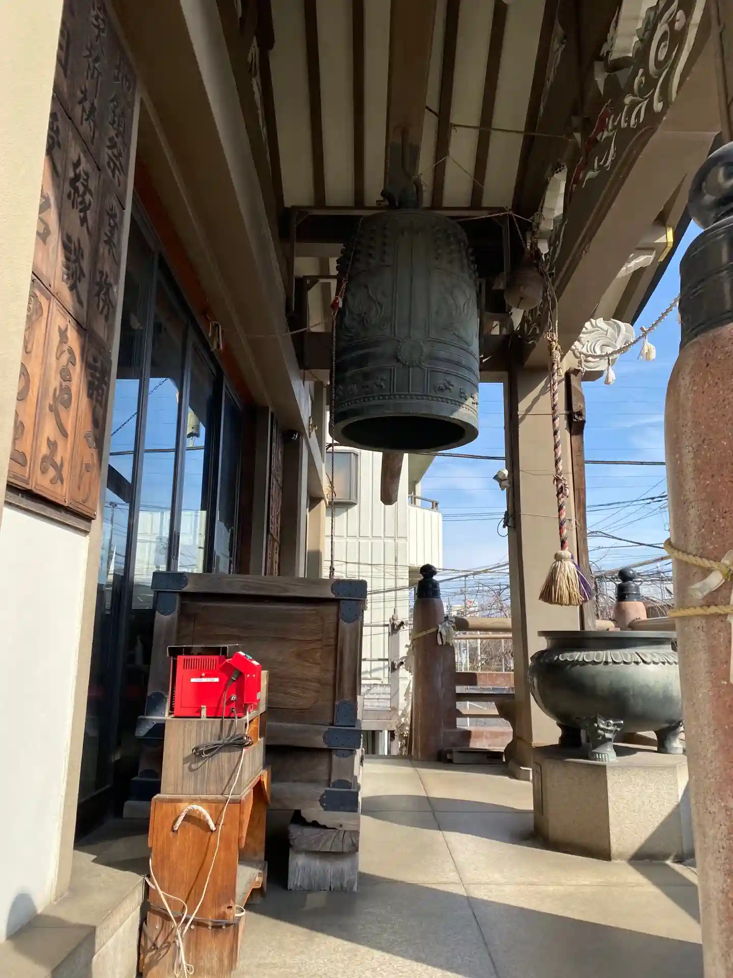 こちらのお寺で印象に残っているのは、仏師宗護・基栄の父子が彫った日本最大けやき材の一本彫御前立不動明王です。階段を登り2階の本堂に入ると正面にご本尊のお不動さまが、鋭い眼差しで立っておられかなりの迫力です。本堂に上がらさせて頂いたので、般若心経とお不動さまの御真言を唱えさせて頂きました。