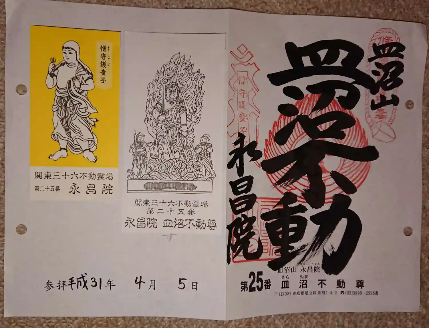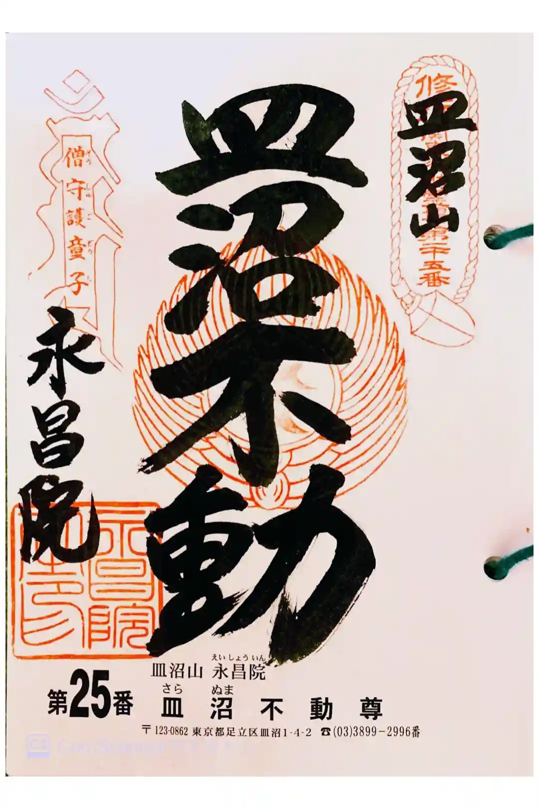 関東三十六不動の25番札所、永昌院・皿沼不動尊の御朱印です。