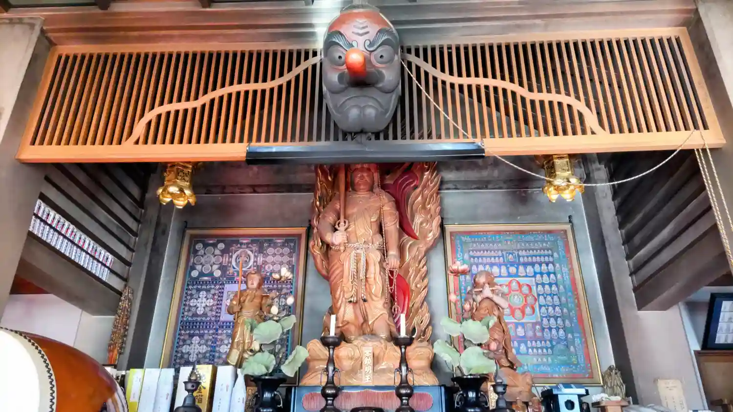 ご本尊の不動明王様は日本最大欅材の一本彫御前…
