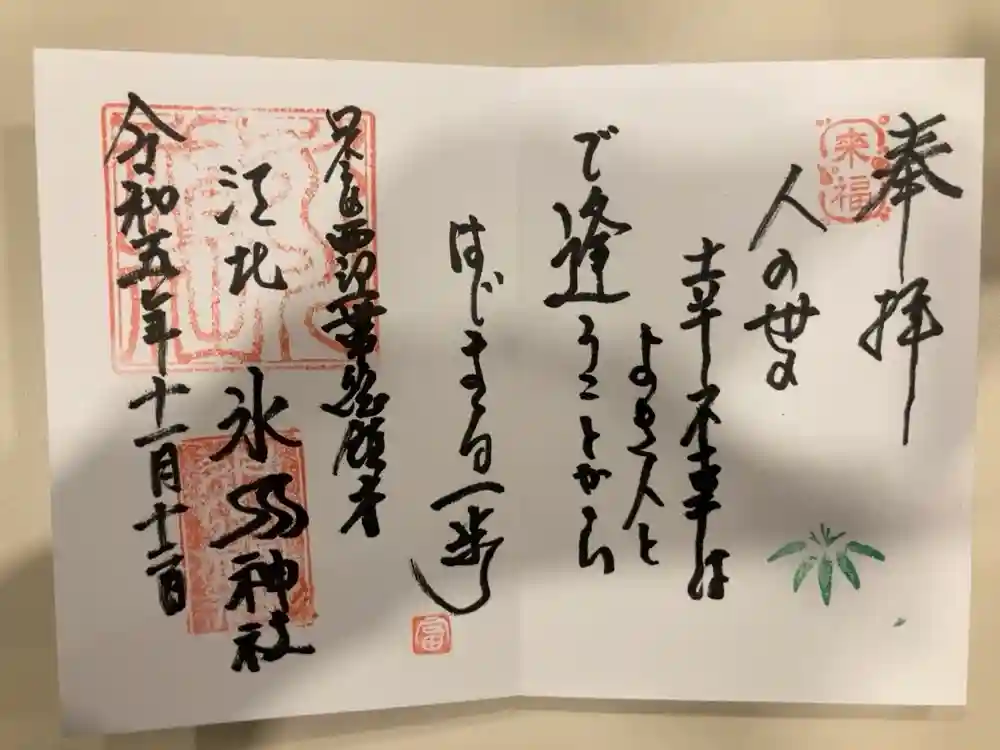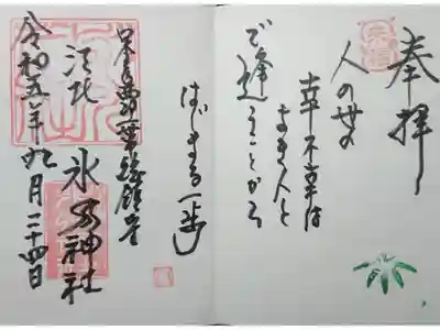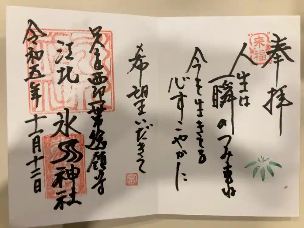 江北氷川神社の御朱印・御朱印帳