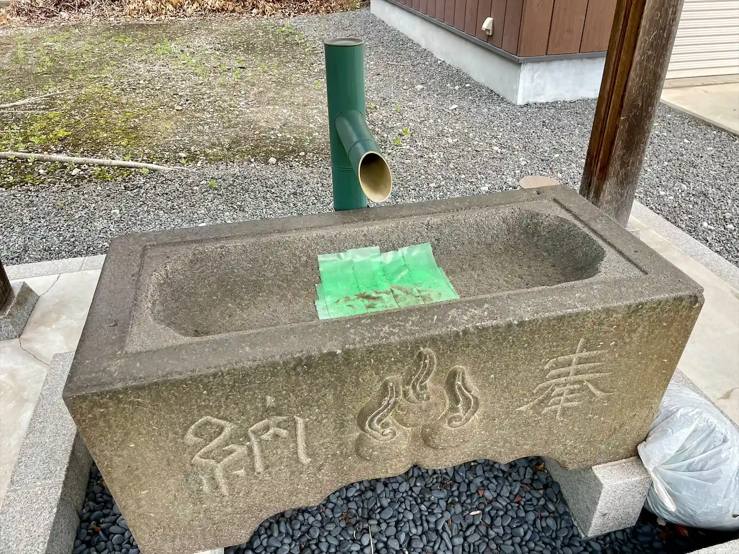 加平天祖神社の隅にあった瓦と同じ紋。こちらではちゃんと飾られていた