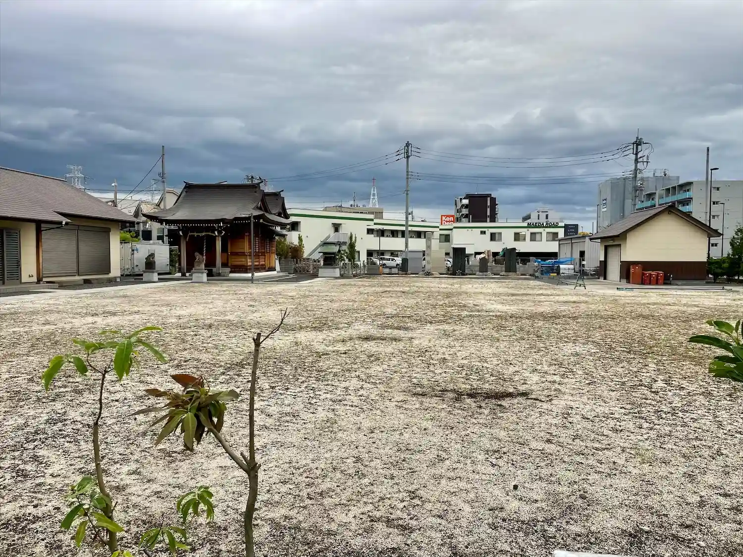 更地のような広い境内の木が若干成長してました。