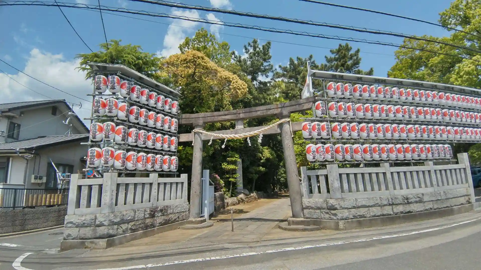 一之鳥居。奉納の提灯がたくさんありますね