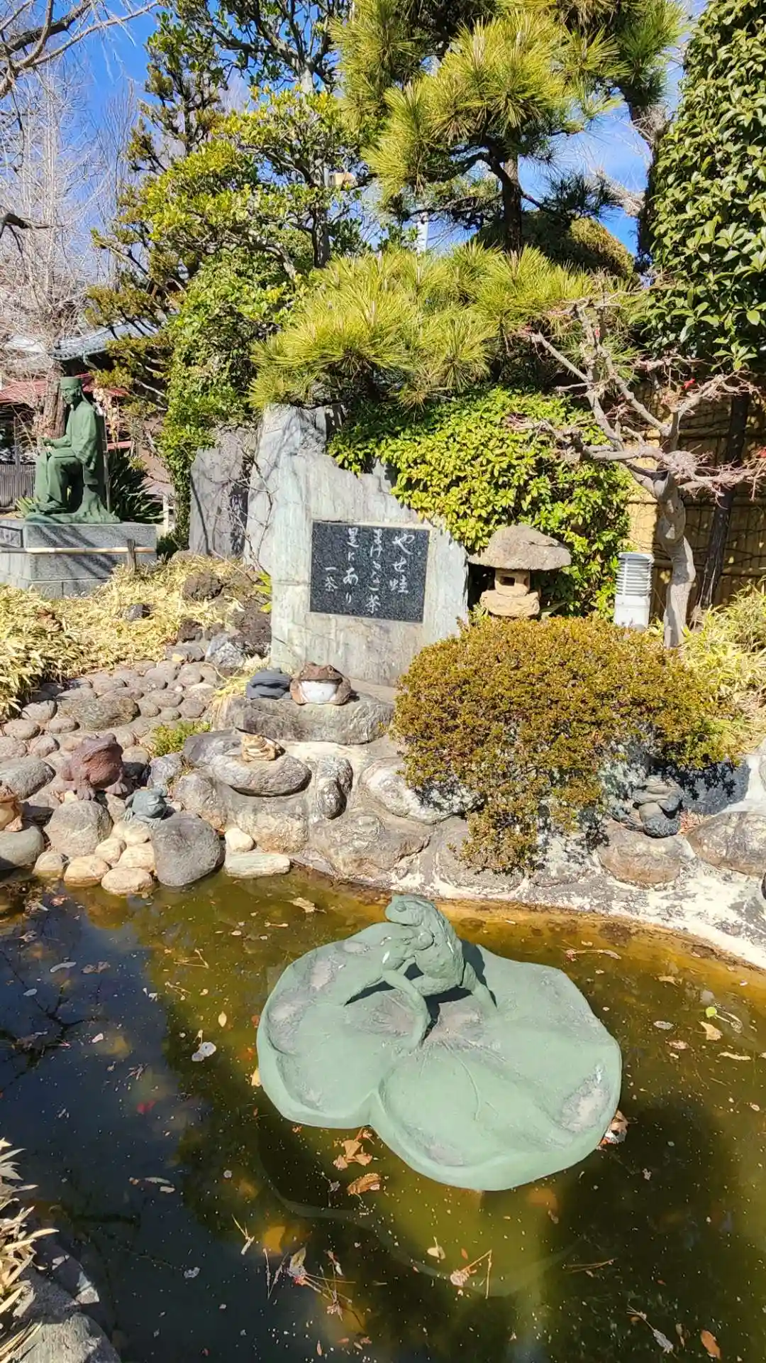 小林一茶ゆかりのお寺。「痩せ蛙 負けるな一茶 是にあり」は炎天寺周辺で歌われたと言われている。