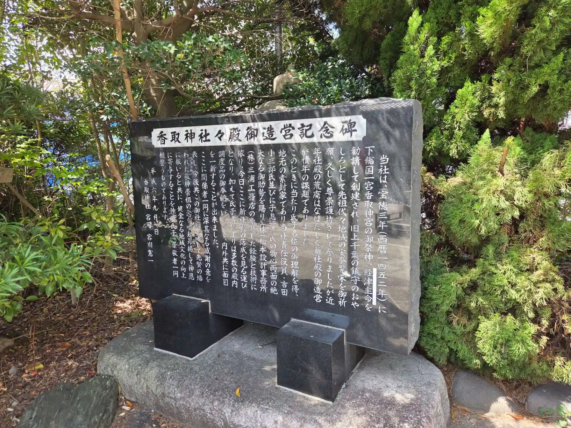 平成六年(1994)建立の社殿造営記念碑