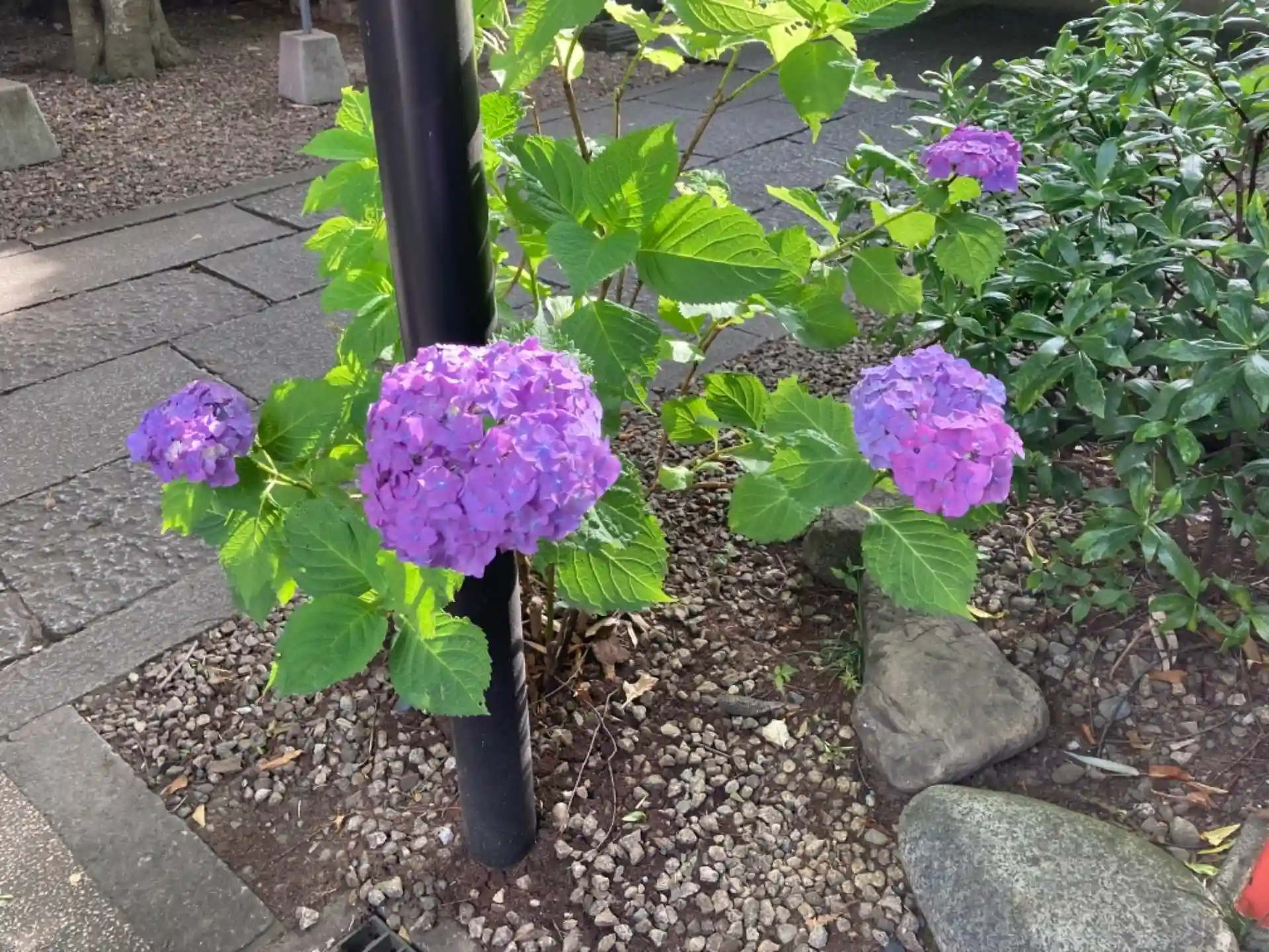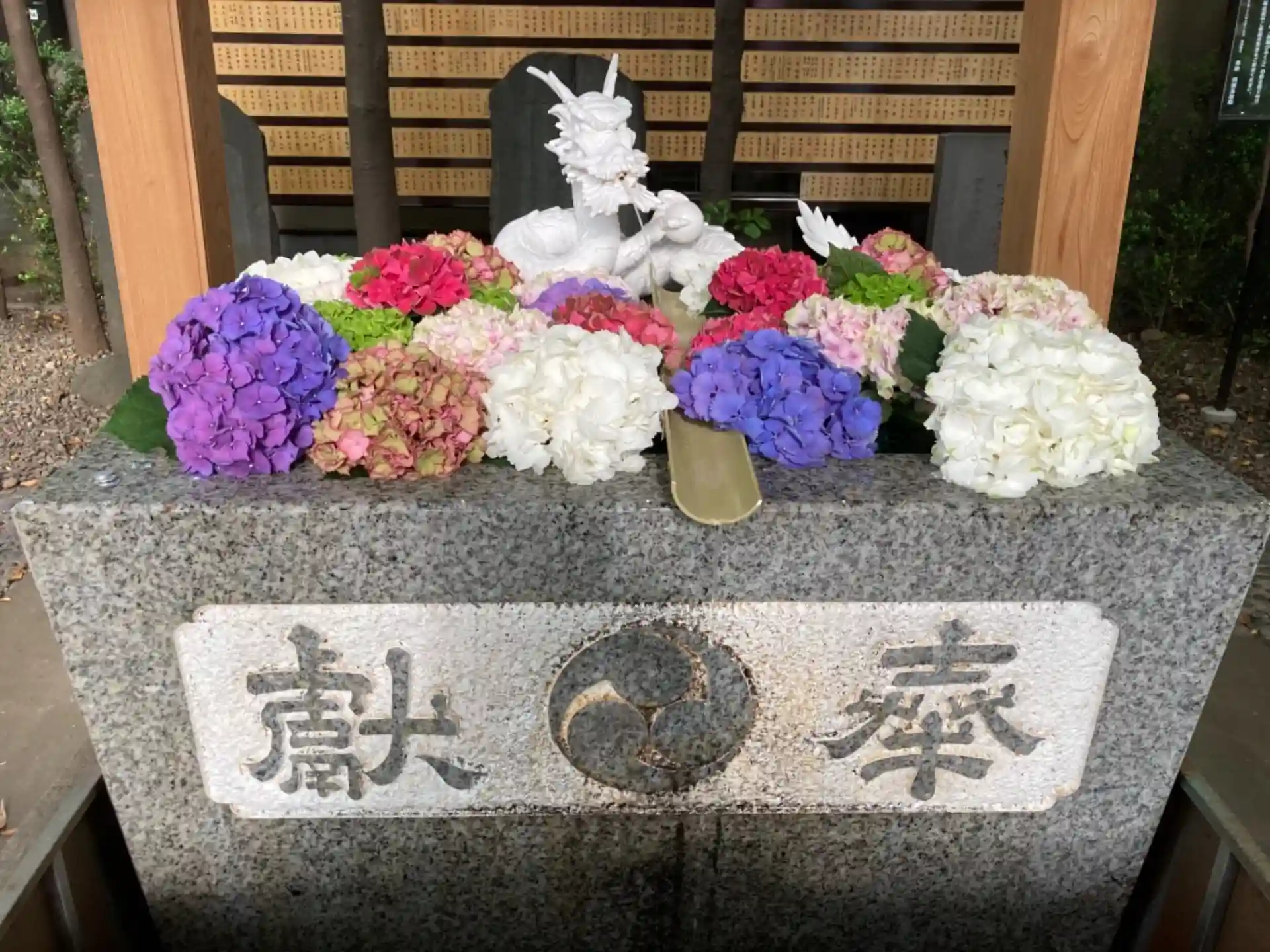 境内の紫陽花も見頃で花手水も紫陽花モード。