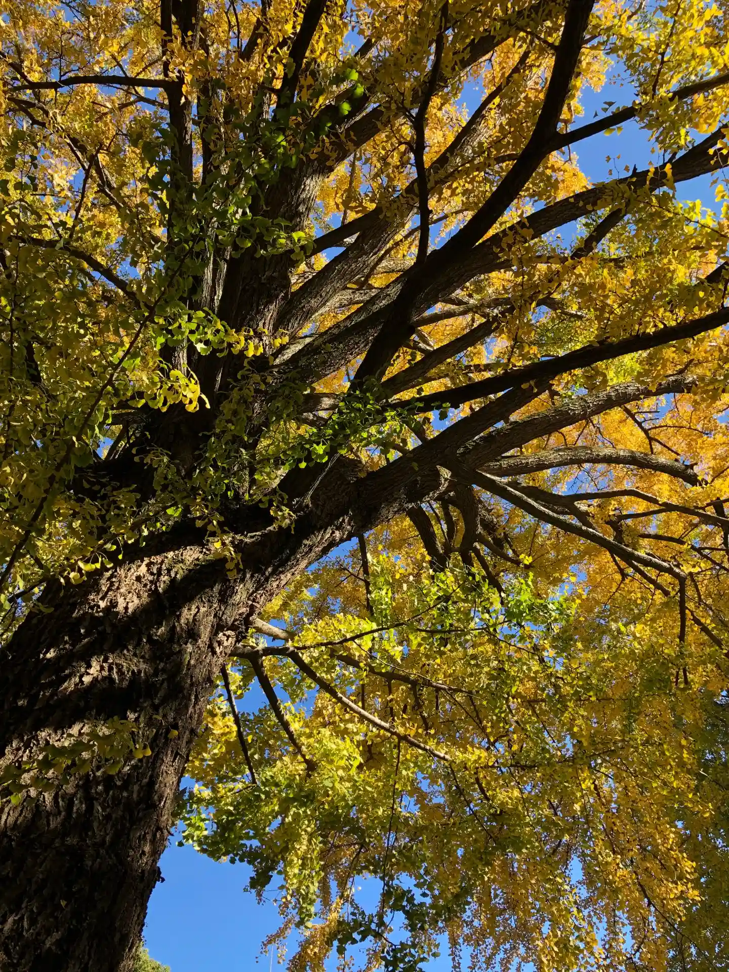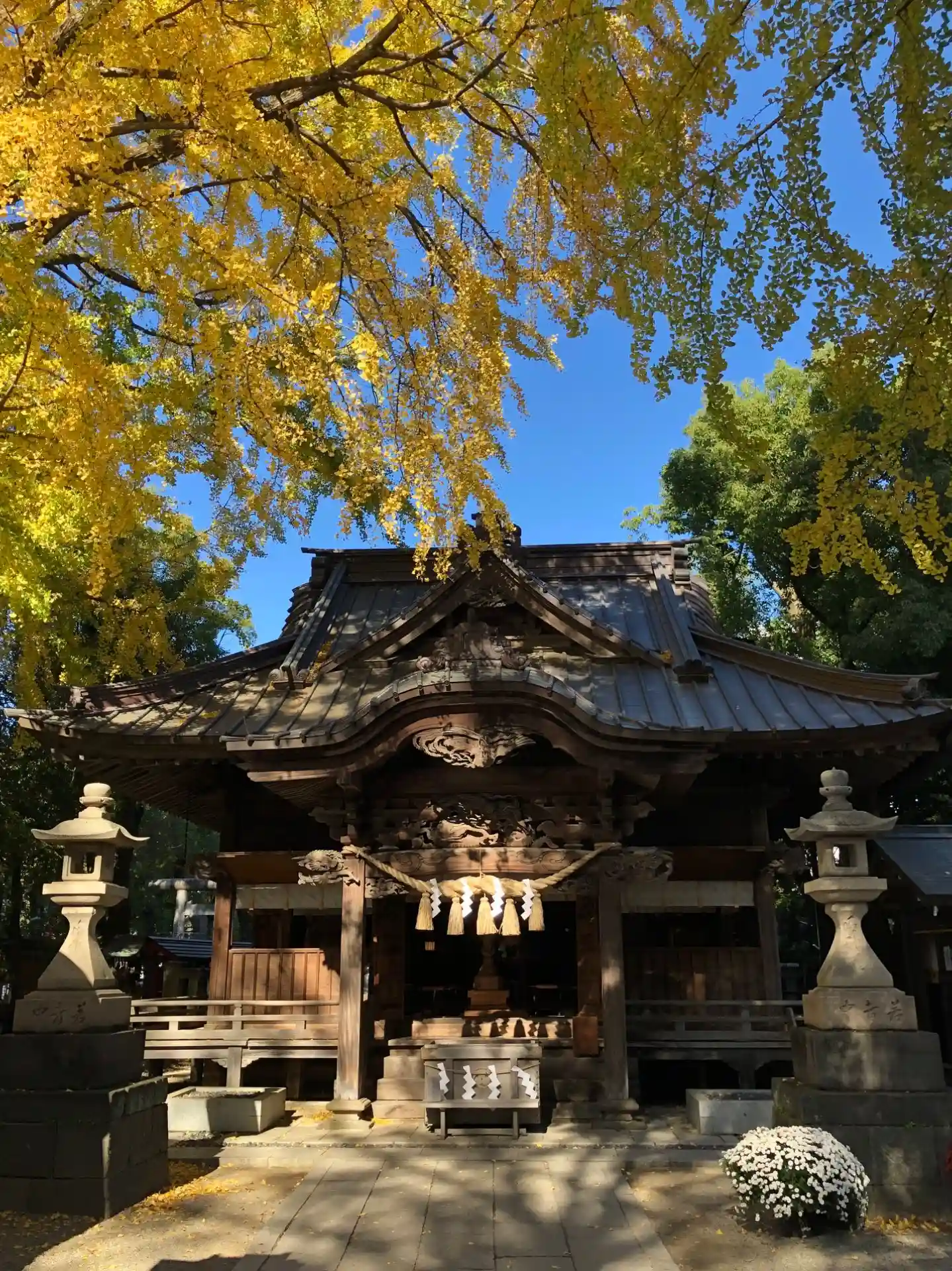 ご神木の銀杏が綺麗に色づいていました。大方黄色、所々に緑色のコントラスト。2日間限定のご朱印いただきたく、久しぶりの参拝です。