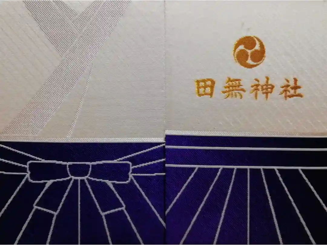 右上に龍の印、御遷座三五〇年の文字、右下に真ん中に田無神社の文字と印、左下に田無神社社務所之印が入っています。
