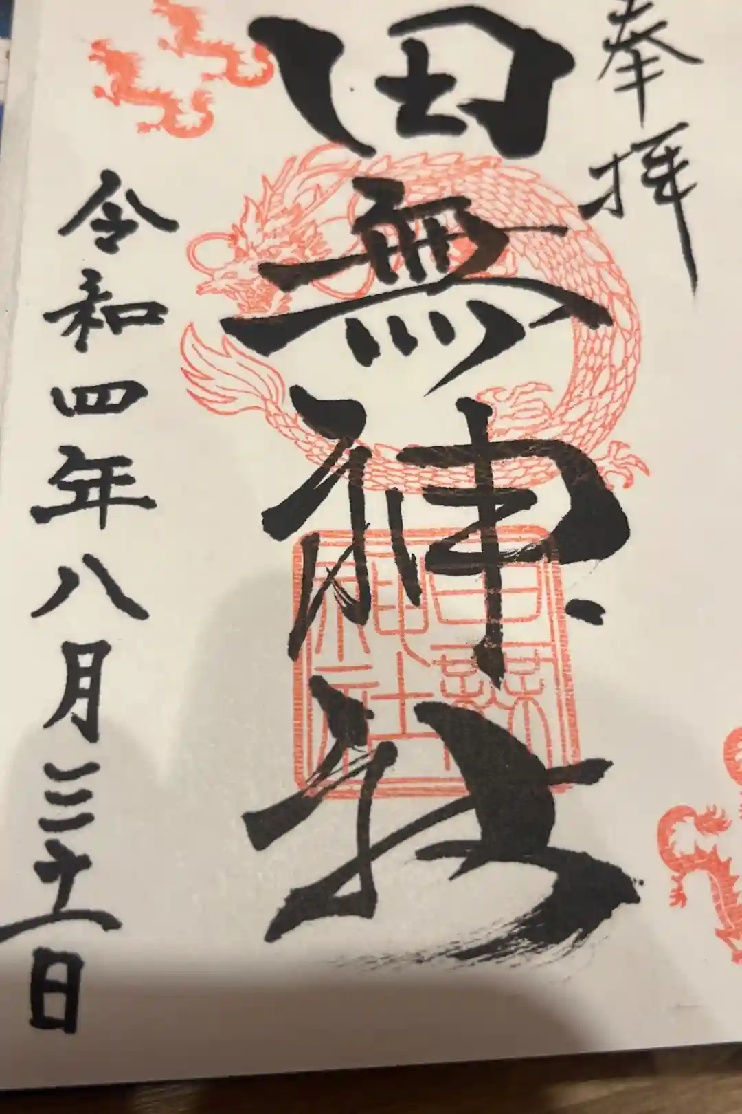 五龍神の御朱印(書置き)を拝受