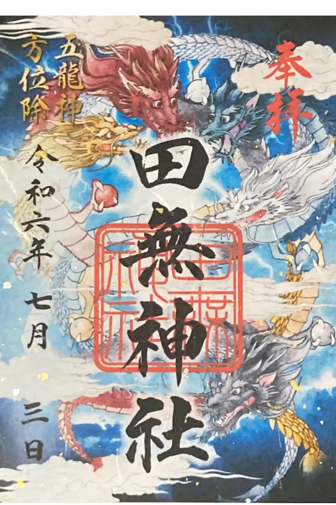 5色の龍の切り絵御朱印です゚+。:.゚(*゚Д゚*)゚.:。+゚凄すぎる…。モノクロバージョンとめちゃめちゃ悩みましたがこちらにしましたw