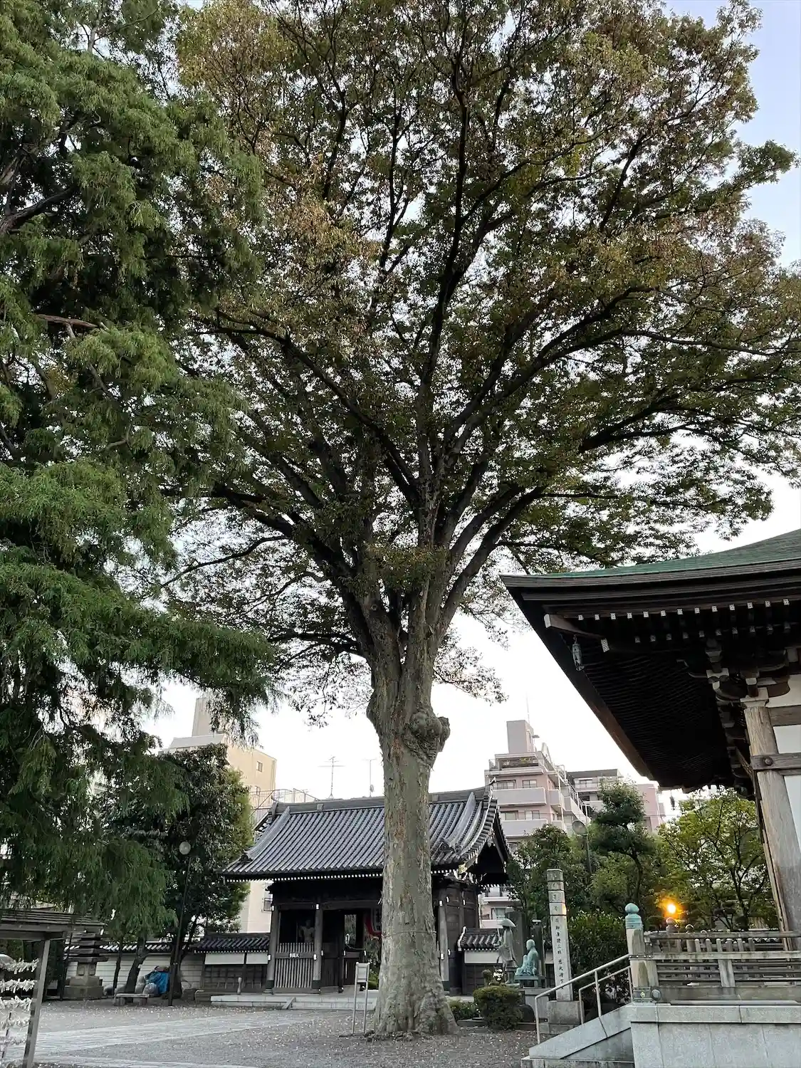 嘉永3年(1850)、本堂は完成し、普請成就供養が行われた。その落成を紀念して、境内にケヤキほか数種の樹木を植栽し、その中の一樹が境内にある大ケヤキであると言い伝えられている。