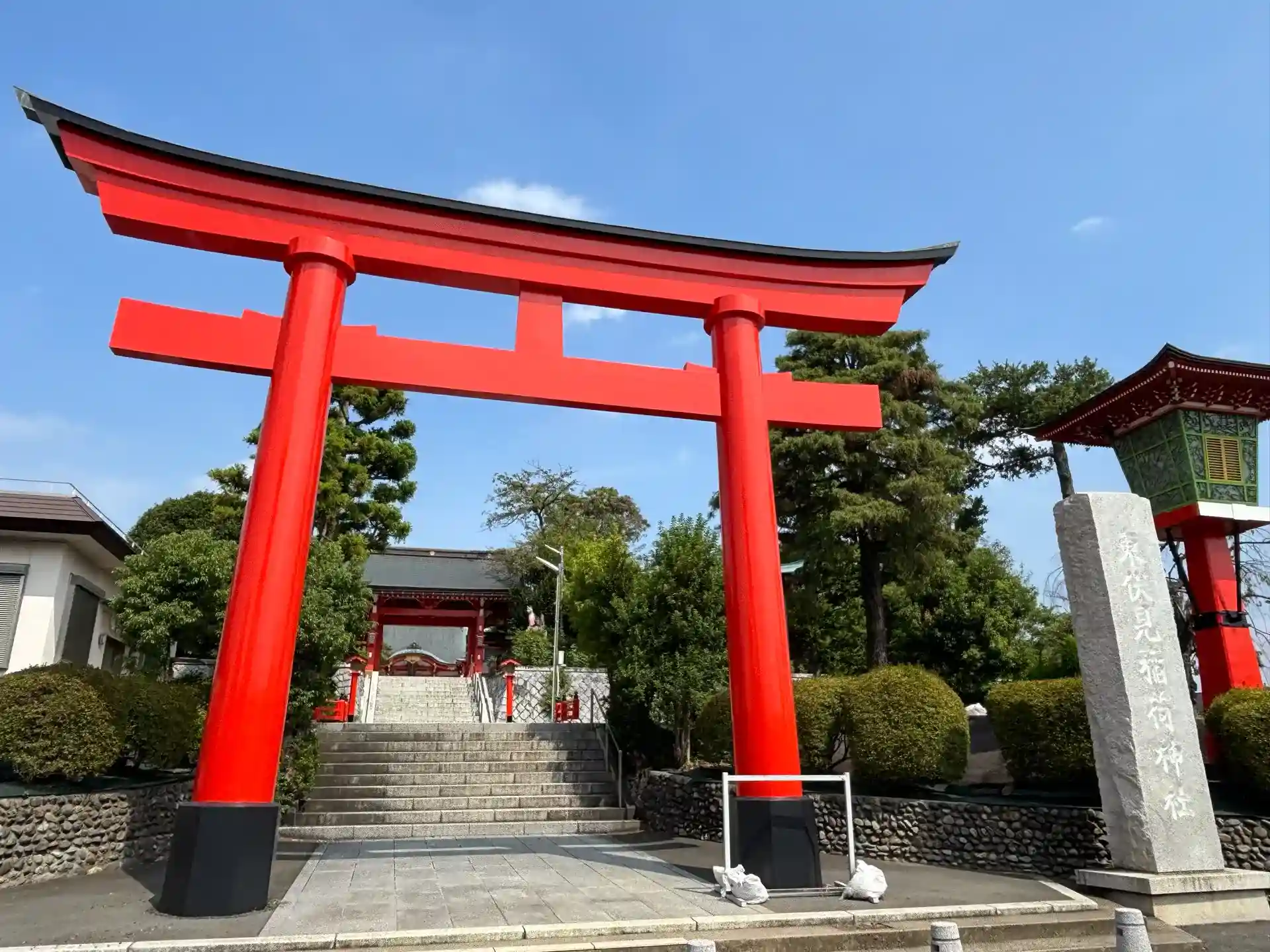 大きくて迫力のある鳥居と灯篭が入り口の東伏見稲荷神社⛩️