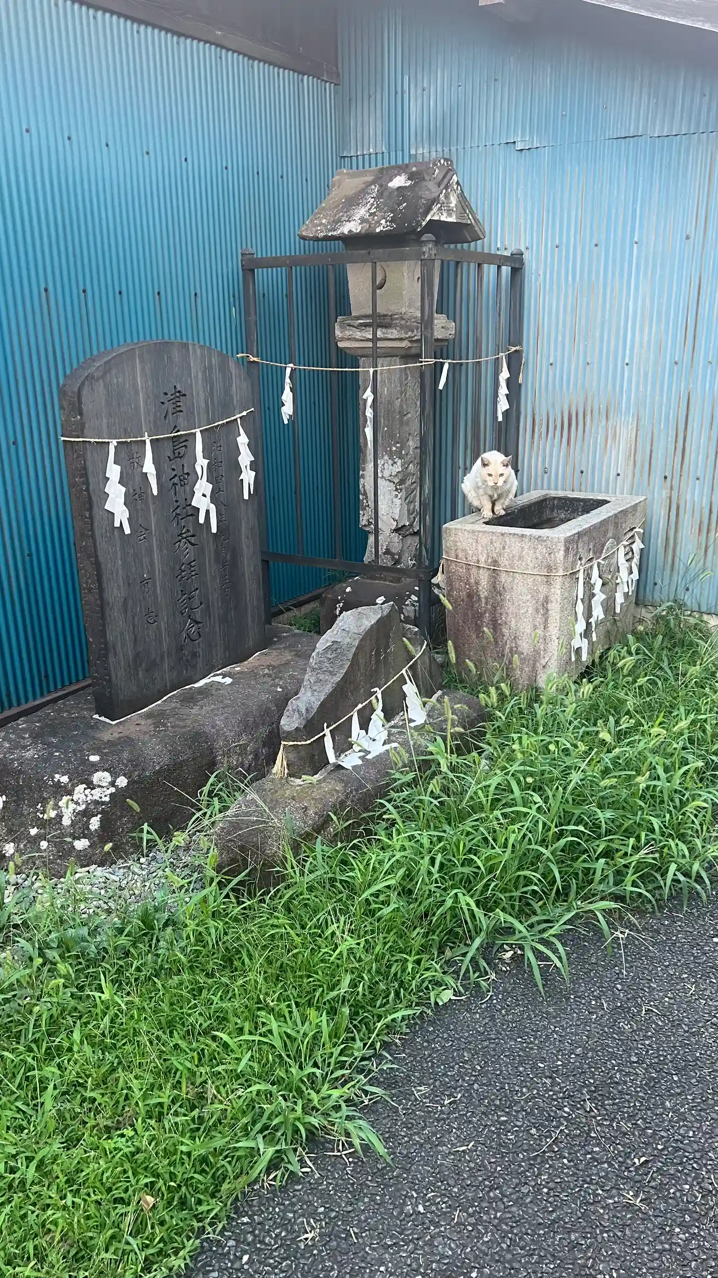 さらに、訪れた際に目を引いたのは手水舎の光景であった。水鉢の縁に一匹の猫が身を寄せ、喉を潤していたのである。毛並みはやや荒れており、野良猫であることが窺えた。人慣れしている様子で、こちらを警戒することもなく水を飲み続ける姿は、境内の静けさに不思議と調和していた。参拝に訪れる人が少ない分、こうした小さな命にとっては、津島神社の境内が憩いの場となっているのかもしれない。