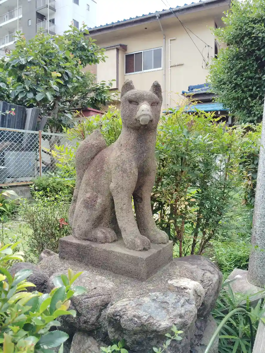 解脱会が奉斎されている模様。同名の神社が中野区本町、埼玉県北本市の本宿天神社境内社にもあり、本宿天神は寛文二年(1662)の創建と古い。ただ、北本市は解脱会の発祥地(御霊地)でもある。解脱会は新宿区荒木町に本部があり、同地金丸稲荷神社の玉垣にもその名が確認できます。