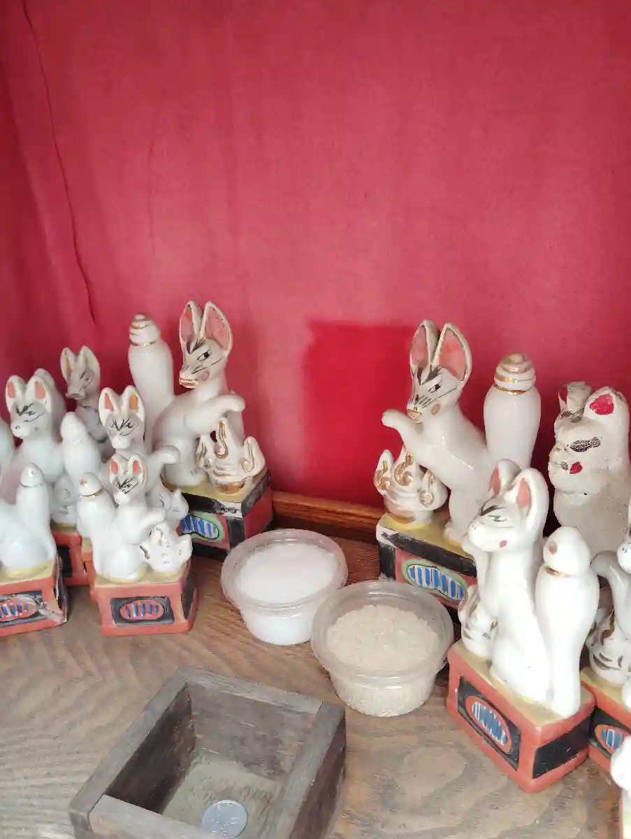 五社五成神社は「日限りのいなり」とも呼ばれ、お願い事はすべて7日間、あるいは21日間というように日限りで毎日お願いし、大願成就には五色の旗をあげるよう定め伝えられています。