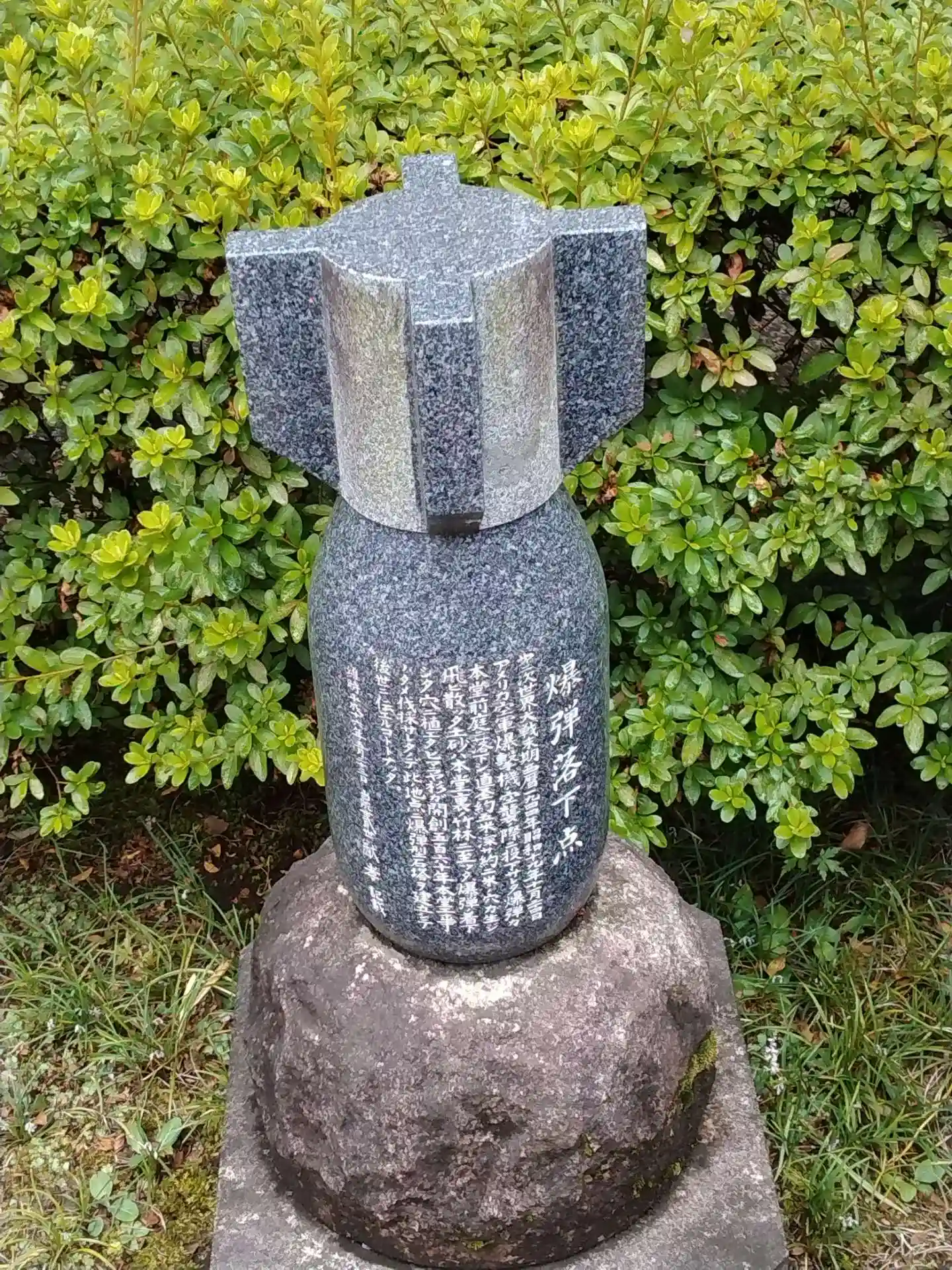 爆弾の落下地点を示す碑。