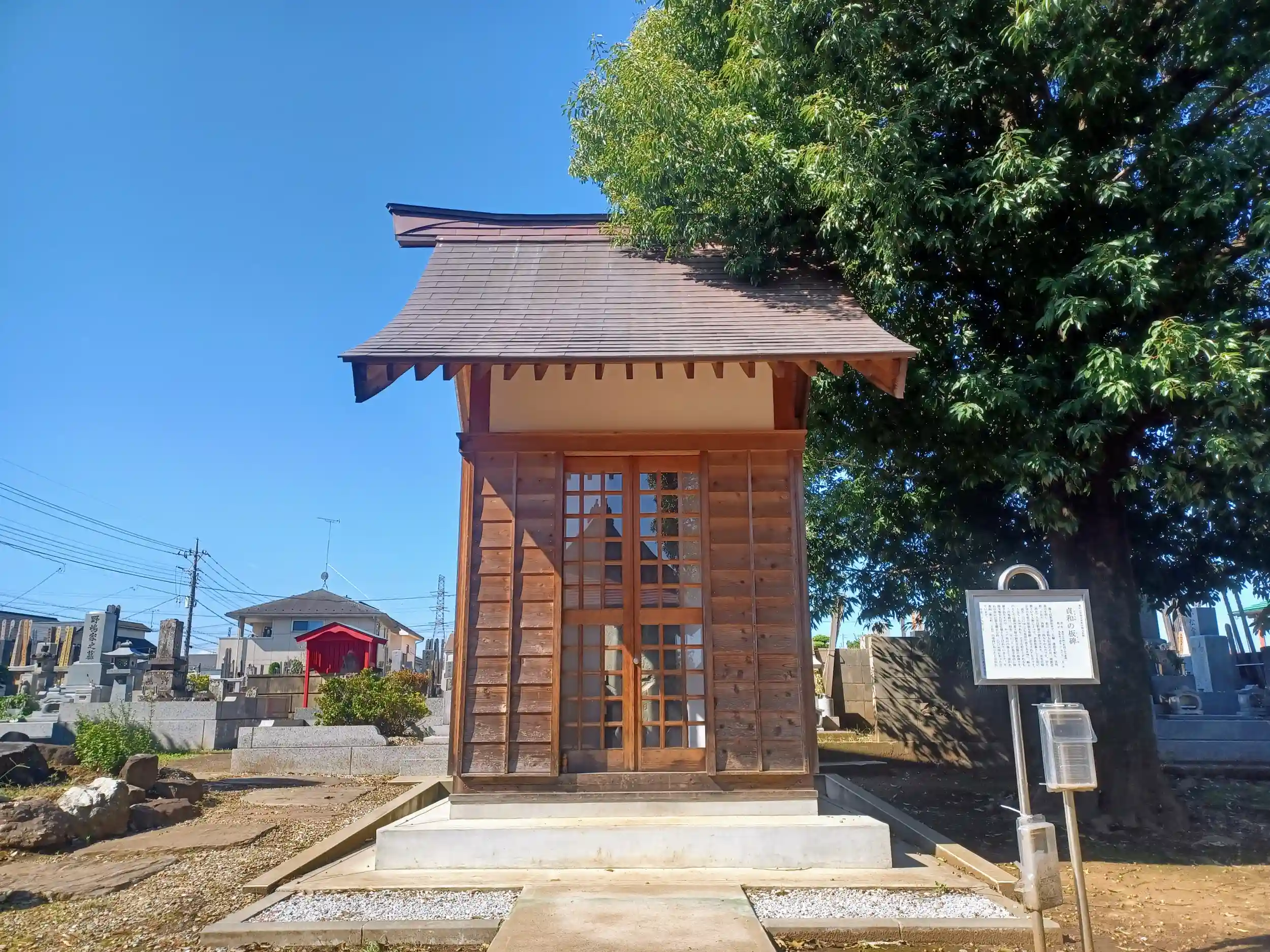 沿った屋根が特徴の地蔵堂は国宝、貞和の板碑は市有形民俗文化財に指定されています。