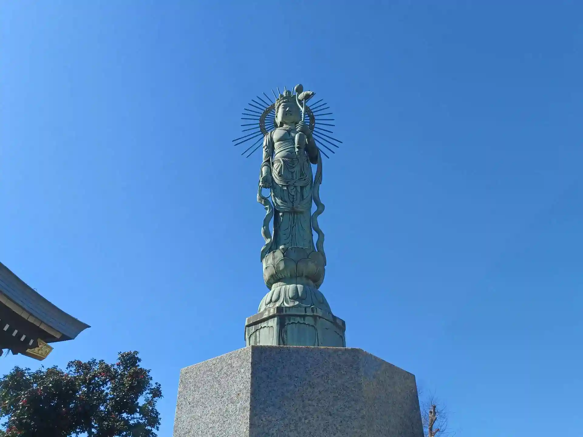 志木街道沿いにある綺麗に整備されたお寺で、通りから見える大きな観音像が目を引きます。