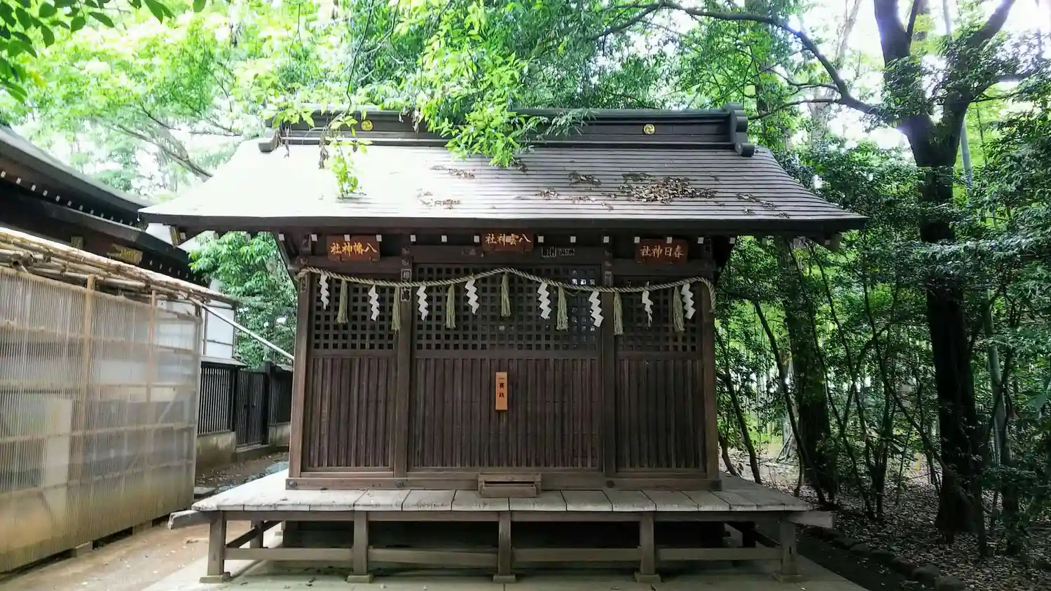 東殿三社(八幡神社、八雲神社、春日神社)。
