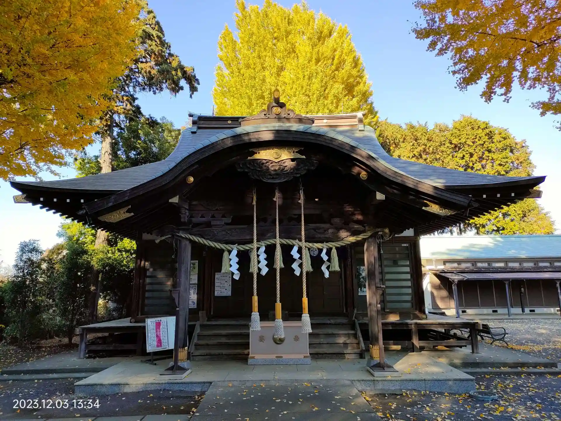 小平市にある公立昭和病院の近くにある神社。お参りに来てる方が多かったので写真は撮れませんでしたが、銀杏の葉で化粧した参道がとてもキレイでした。