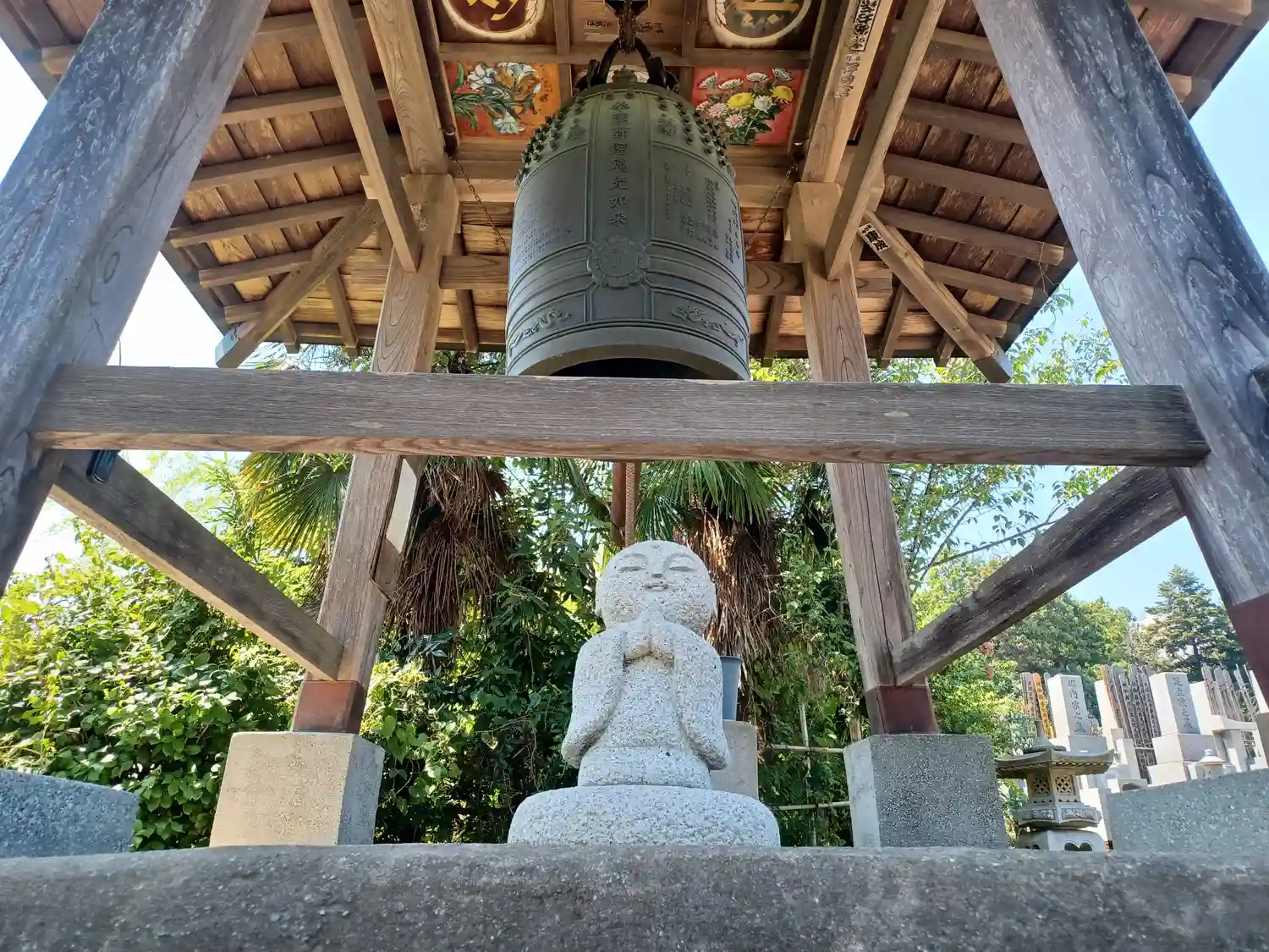 梵鐘は元禄十七年(1704)に鋳造されたもので、町の文化財に指定されています。鐘楼は明治の火災の後、昭和五十年に再建されました。