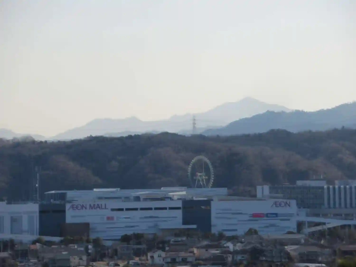 観覧車は東京サマーランド、その奥に大山阿夫利神社と不動尊で名高い、相模の大山が見えます。奥多摩の山だけではなく、丹沢の山々も間近に眺められます。