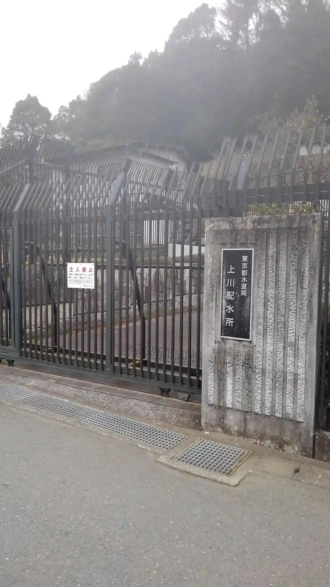 今熊神社の大きな石造の看板隣は都水道局の施設。