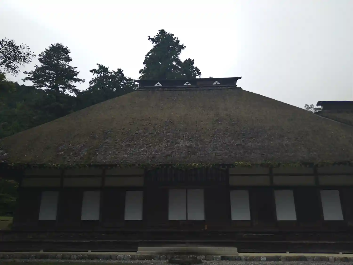 本堂の裏側 こちらも萱葺き屋根です