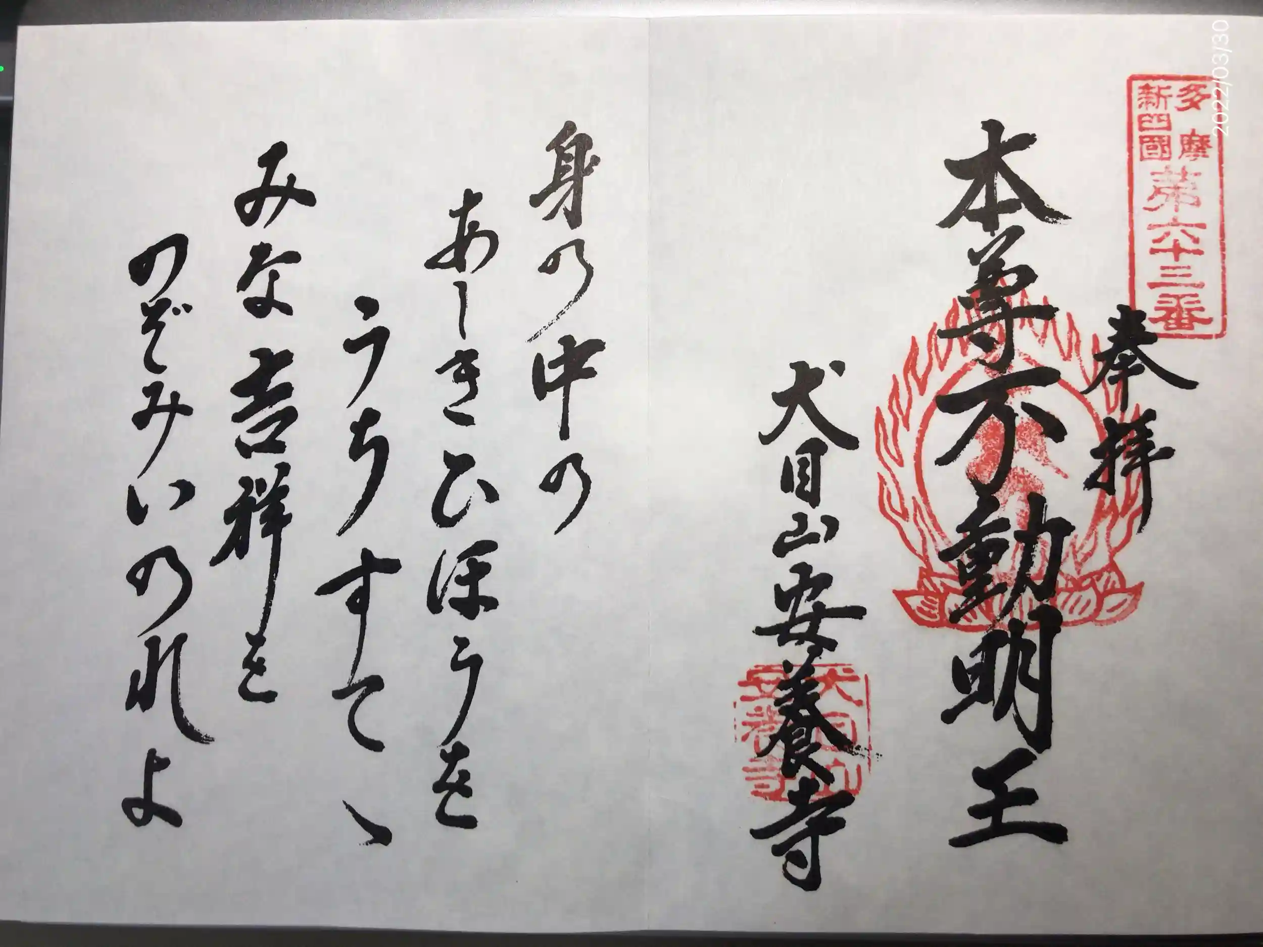 御朱印をお願いした所、本日住職が不在の為、三十三ヶ所観音霊場ではなく、多摩八十八ヶ所霊場のみになると。