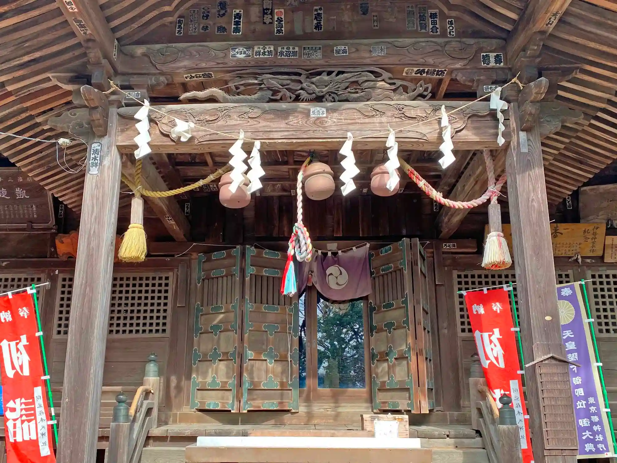 <拝殿>正面。扁額はなし。重厚感のある扉がいい。
