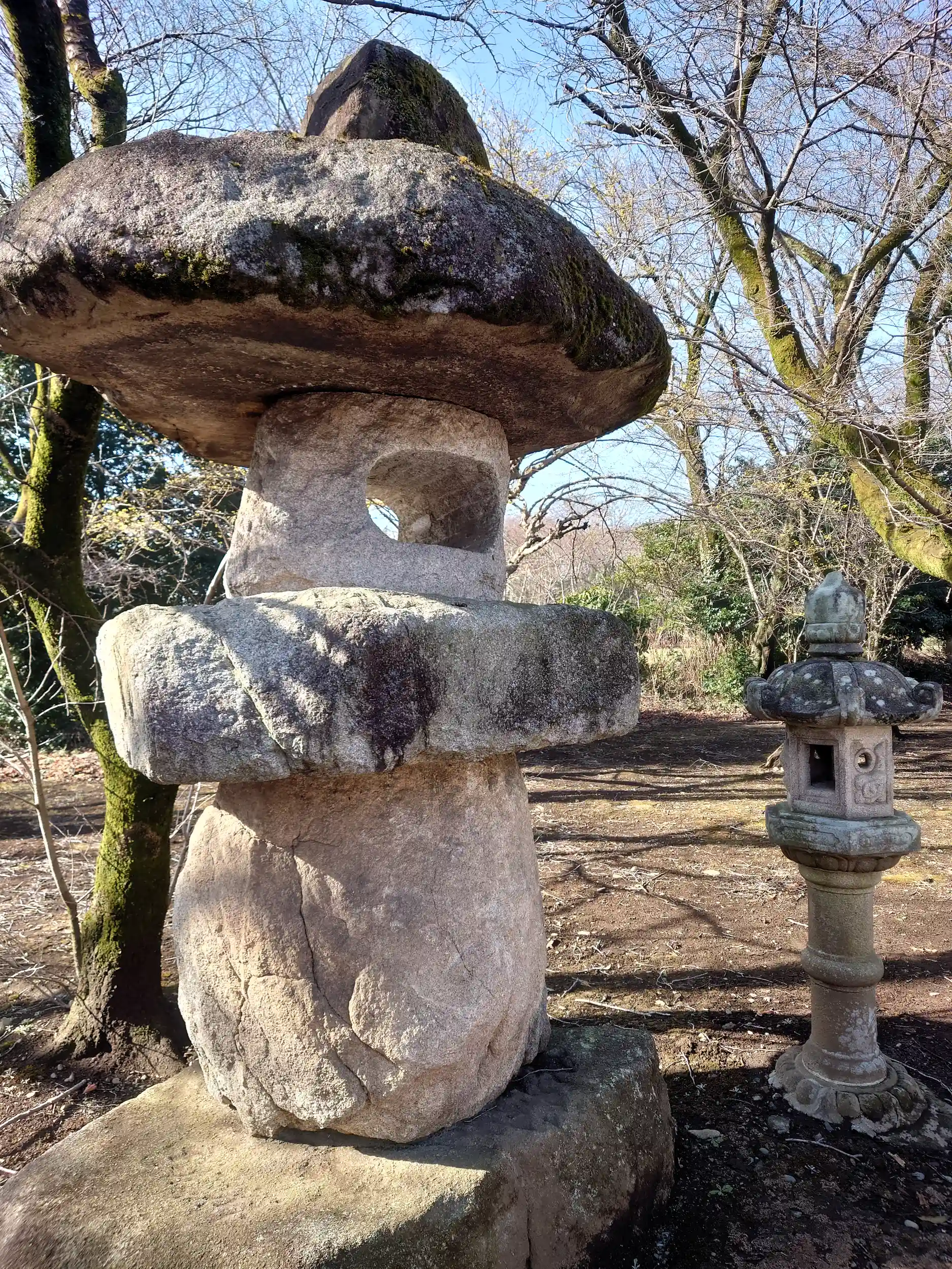 巨大な石灯籠がありました!右にあるのが通常サイズで、ビックリして思わず2度見しました笑 どうやって造ったのか気になります…!