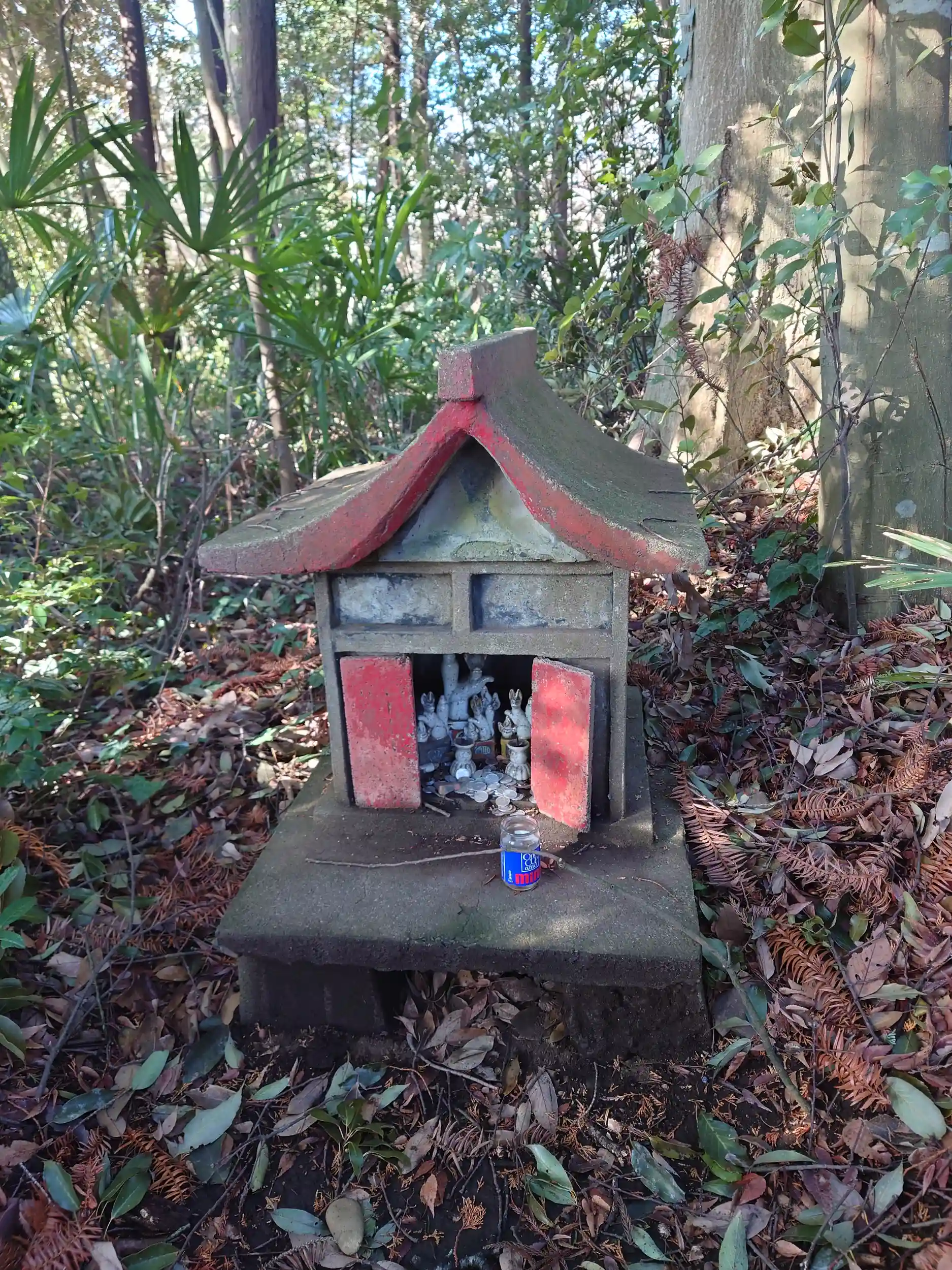 手水舎の横に石碑が並んでいたのですが、木や植物に隠れていてよく見えませんでした。
