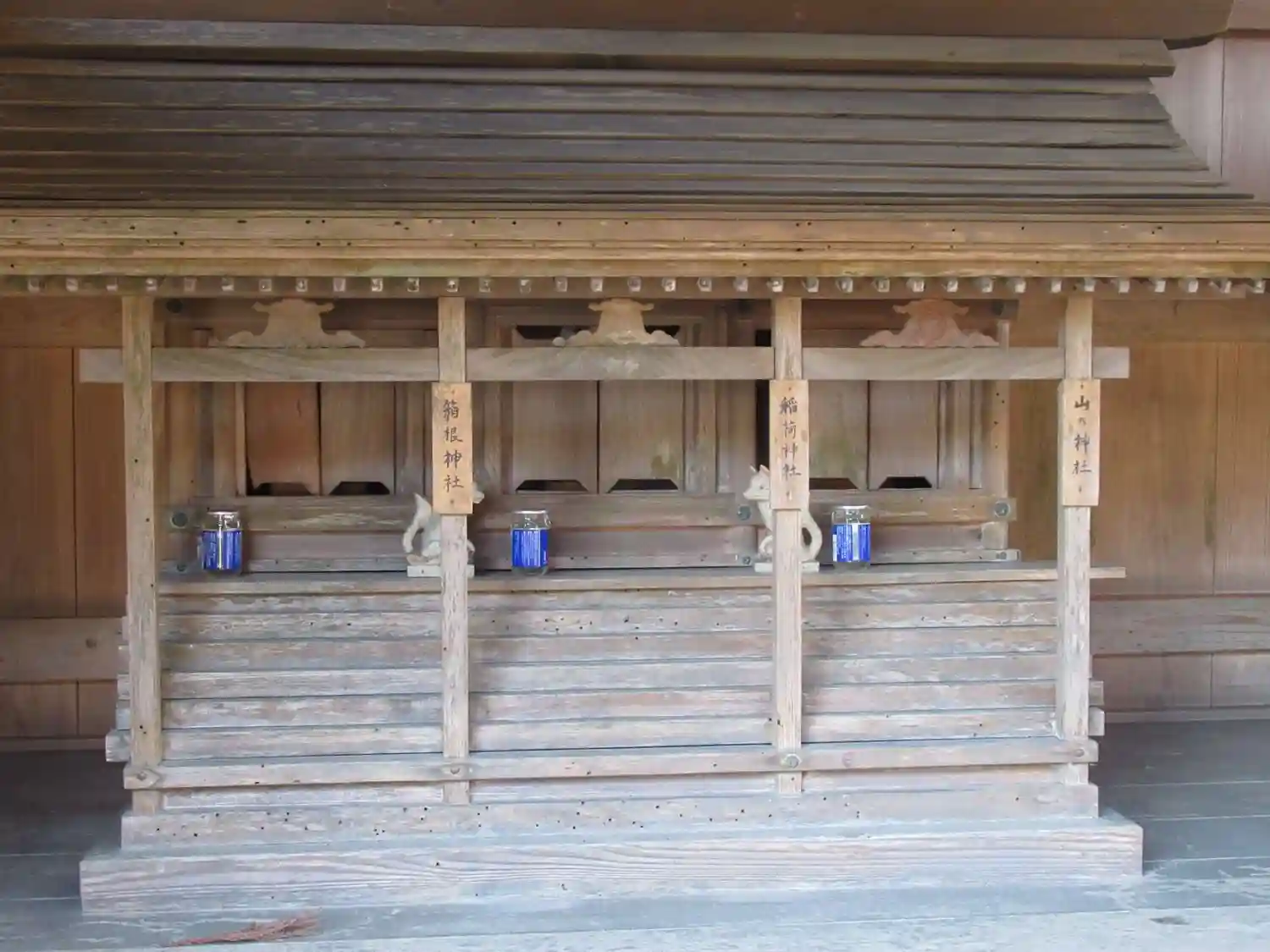 覆い堂の中に摂末社の祠がお祀りされています。