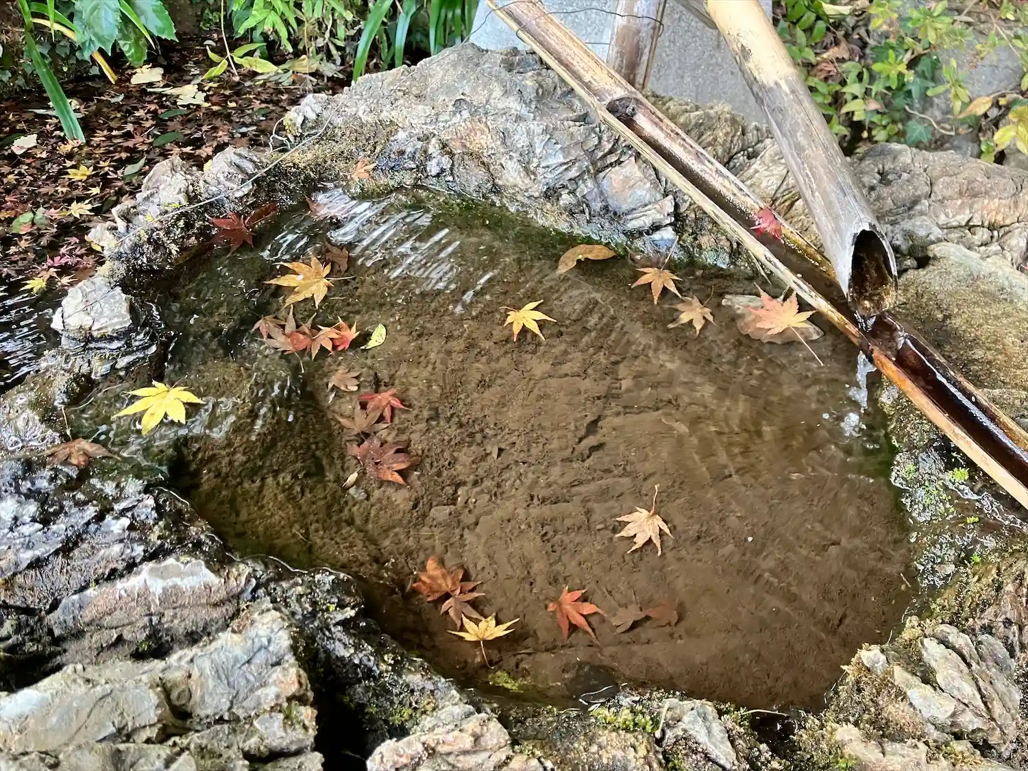 紅葉🍁の落ち葉が浮いていて天然の花手水のような美しさでした🍁✨