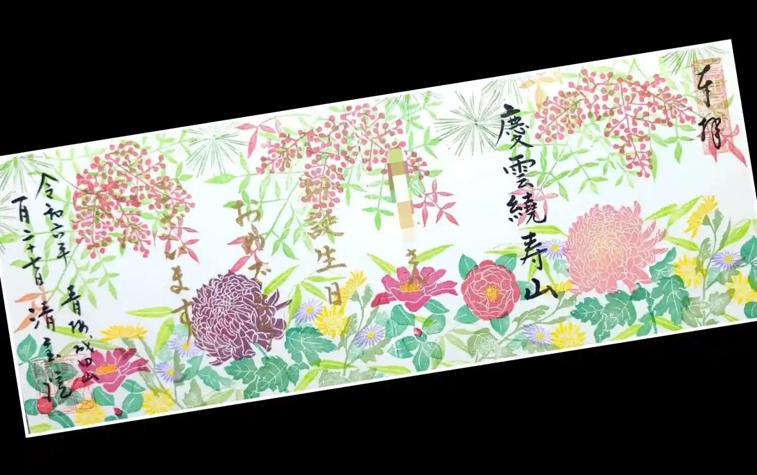 金文字でお祝いの言葉を書いて頂いております。