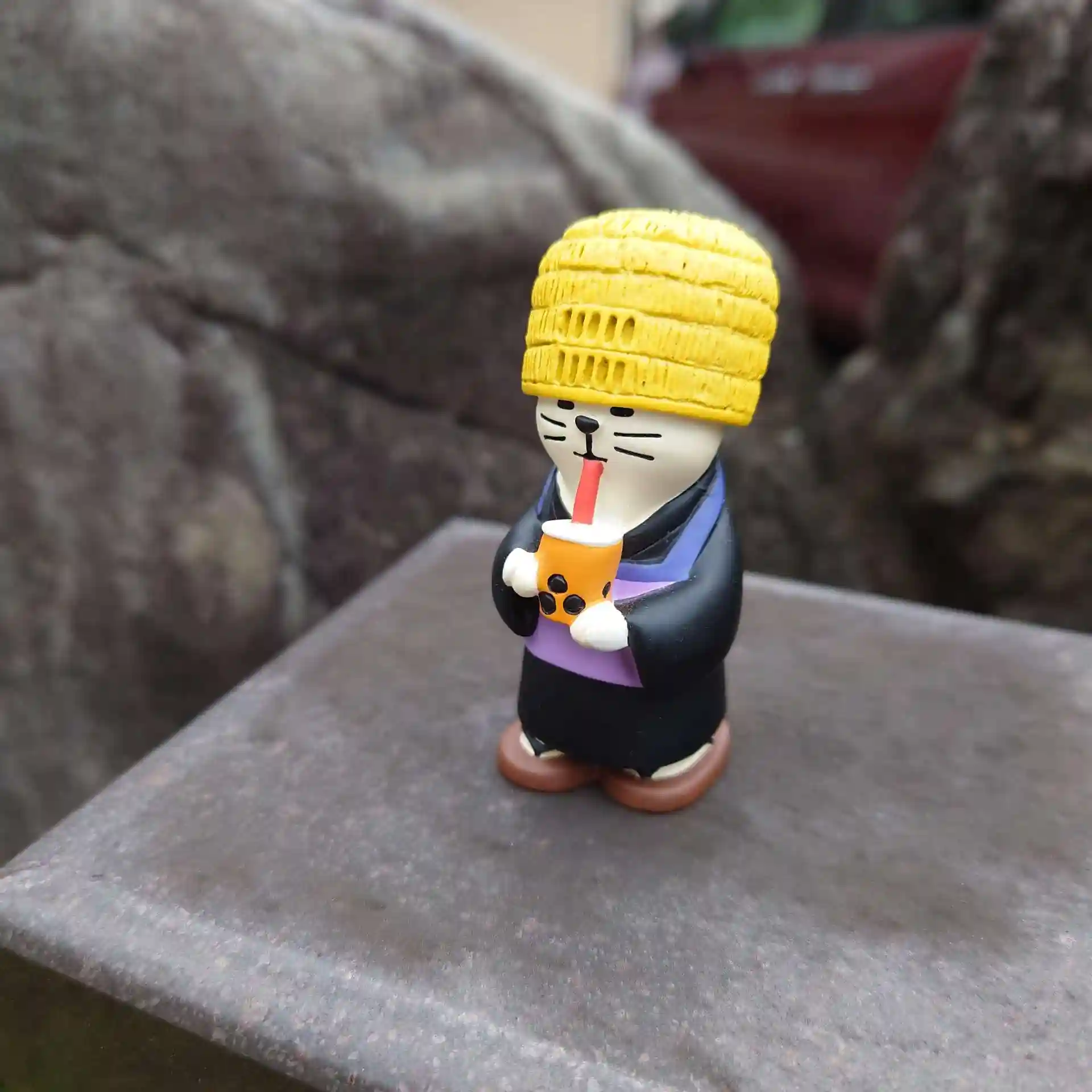 虚無僧かと思いったら、その恰好をした猫がストローで飲み物を飲んでいる姿でした😄
