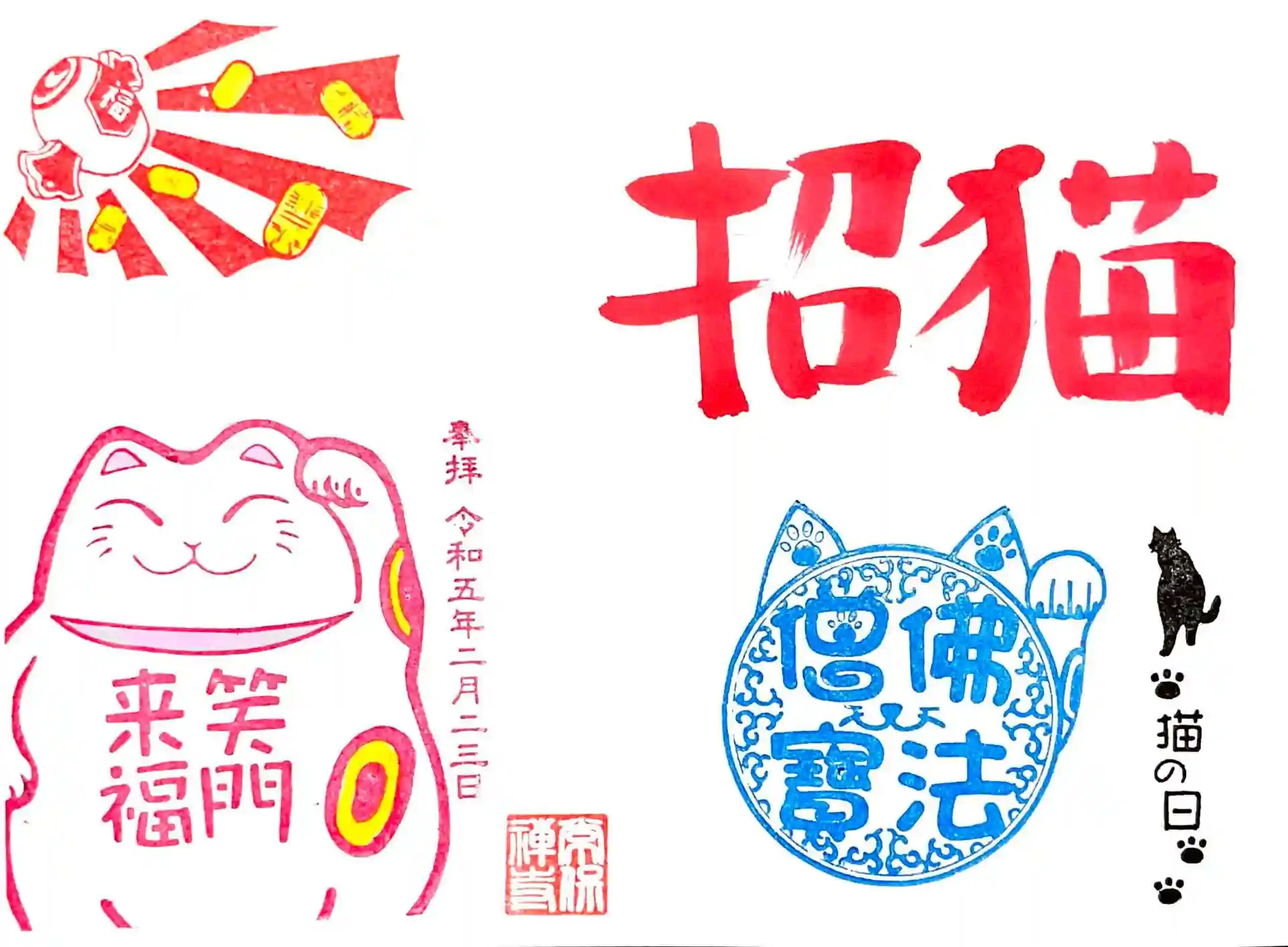 私は猫は赤、宝印は青で頂いておりますが、サンプルとは逆でした。
