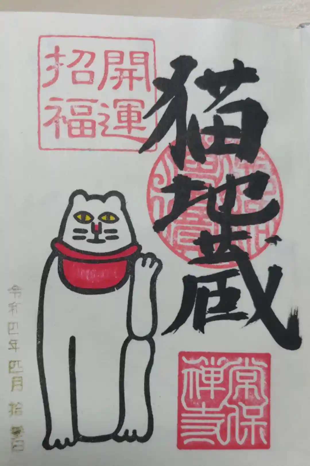 開運招福猫地蔵の御朱印。猫地蔵の絵