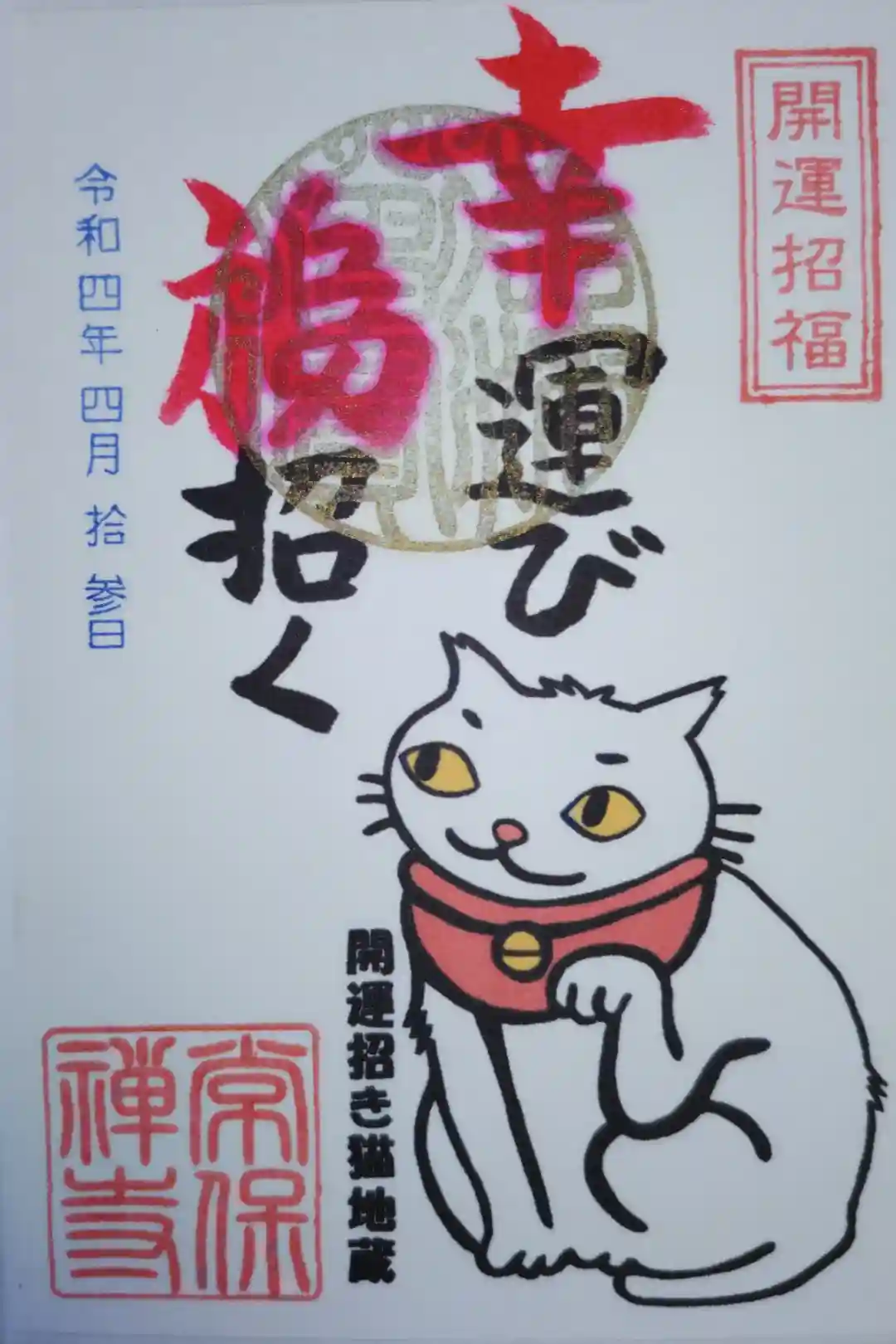 開運招き猫地蔵のイラスト御朱印。開運招福、幸運び福招く。