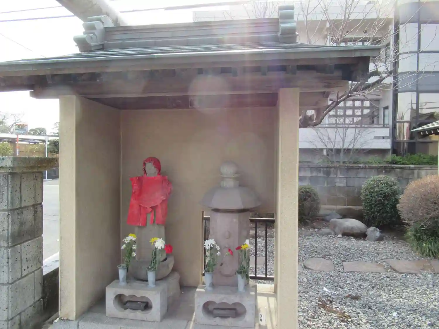 こちらは地藏堂です。本殿よりも規模の大きな建物です。小さくガラスが切られていて、中のお地藏さまのお姿も拝むことができます。脇に不動明王もお祀りされていました。