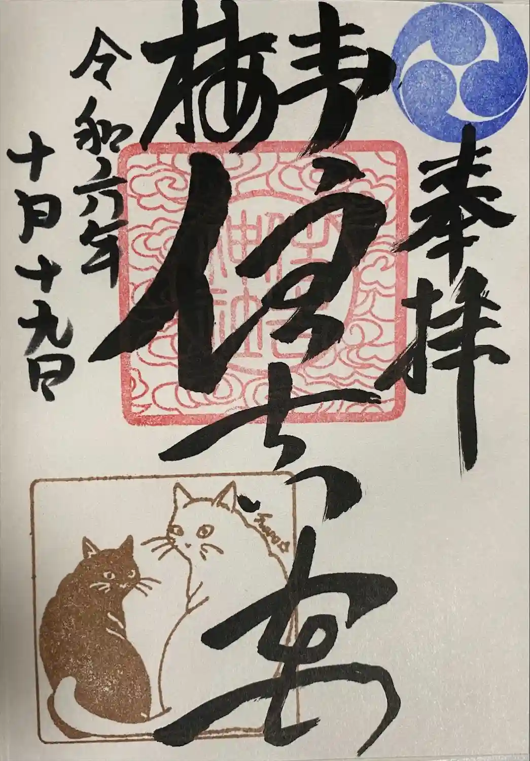 かわいい猫の添え印のある御朱印でしられています。