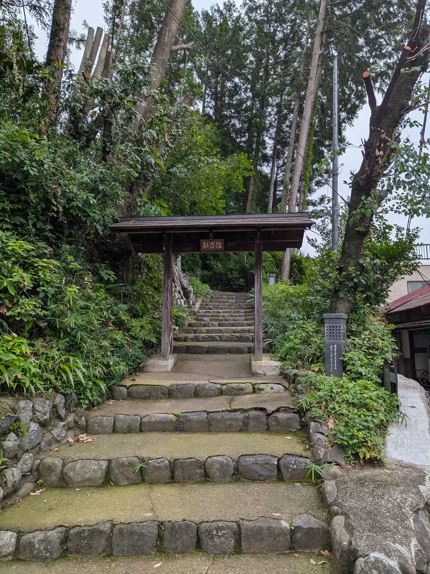 街道から社殿までに急な石段を登ります。