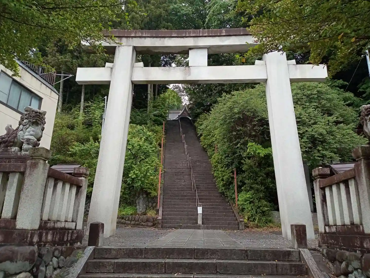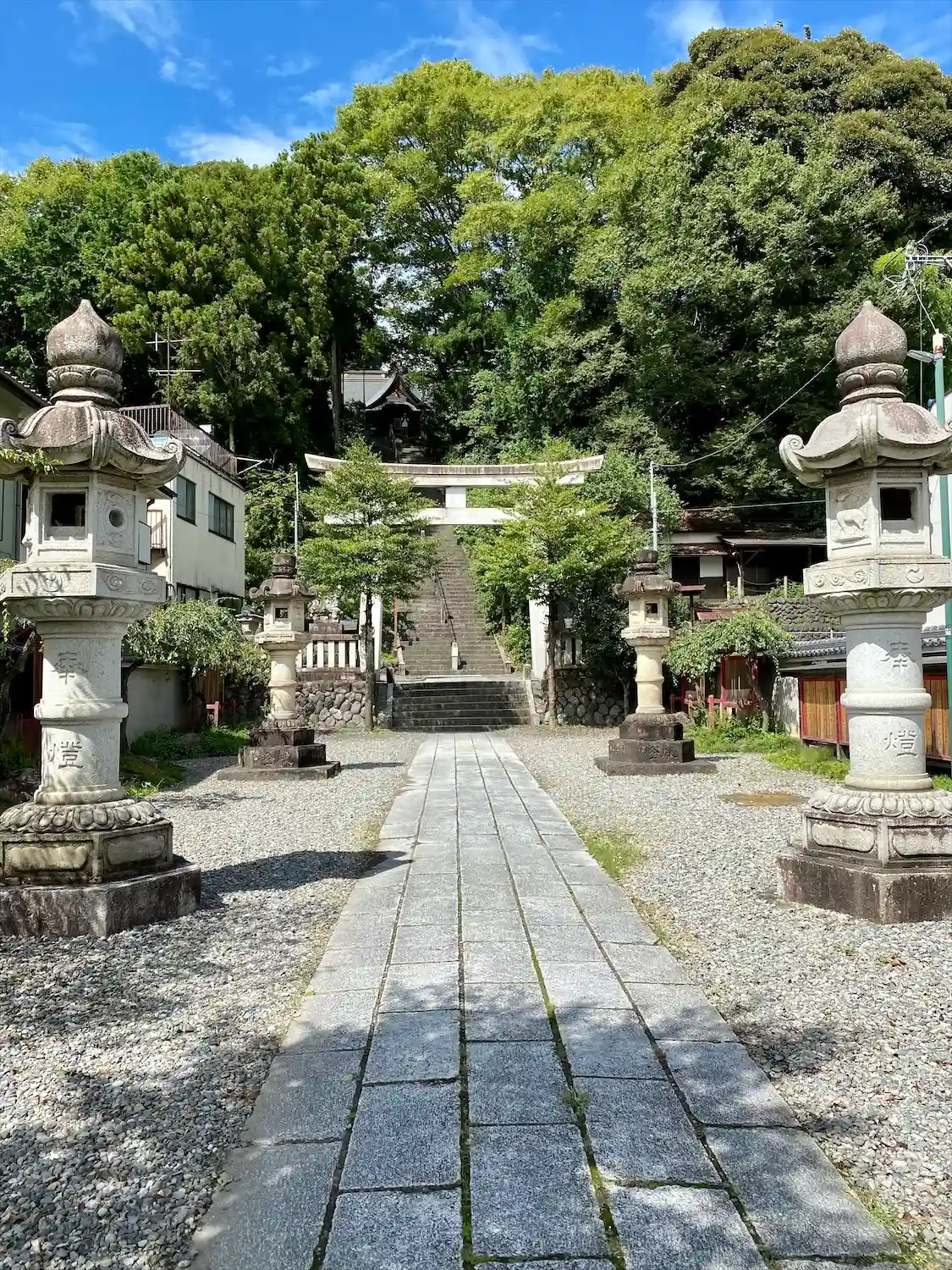 旧街道市街地沿いですがちょっとした階段を登ります。その分眺めはいいです。御朱印は拝殿右側の社務所で…