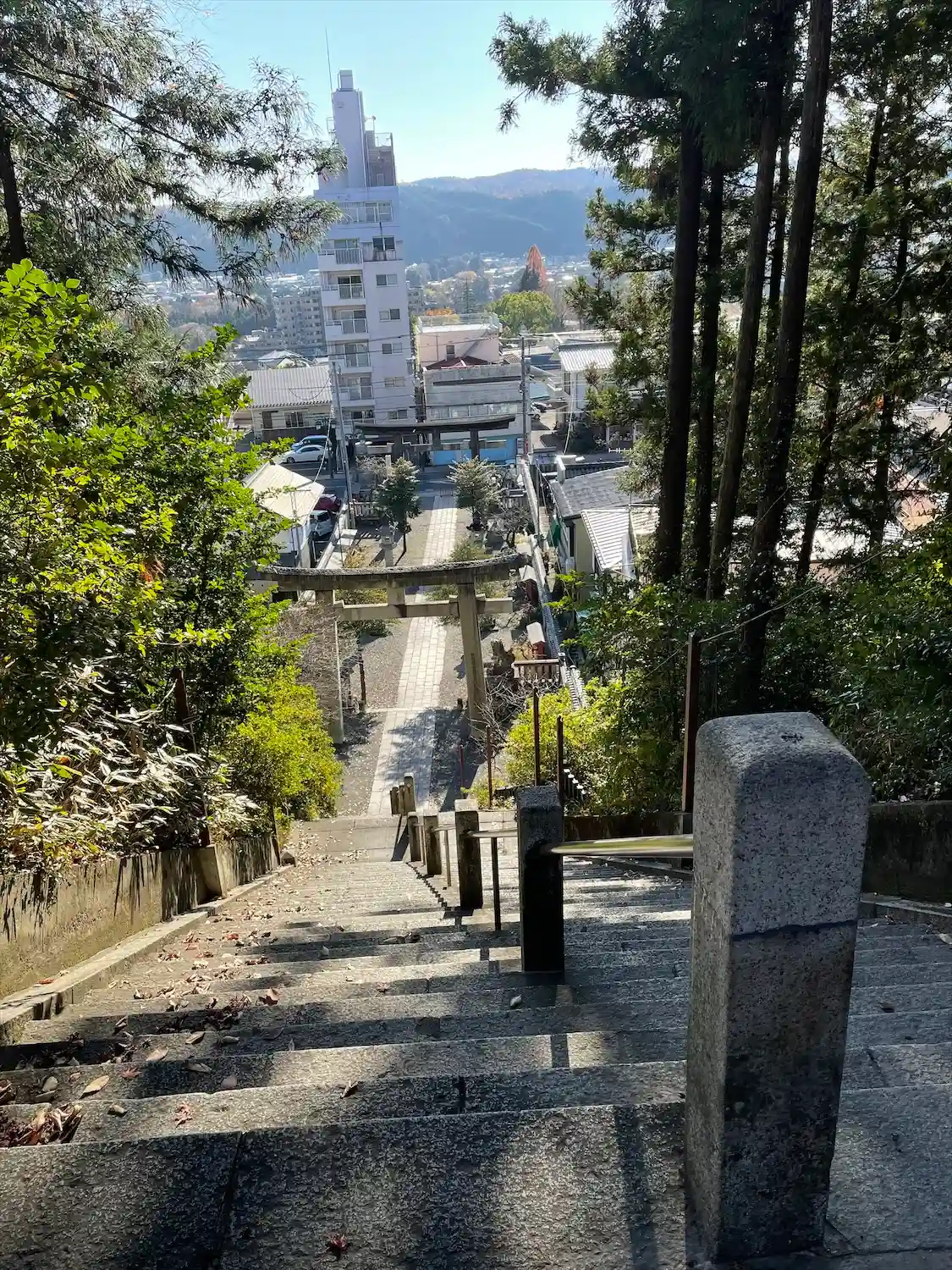 境内から階段下を臨む