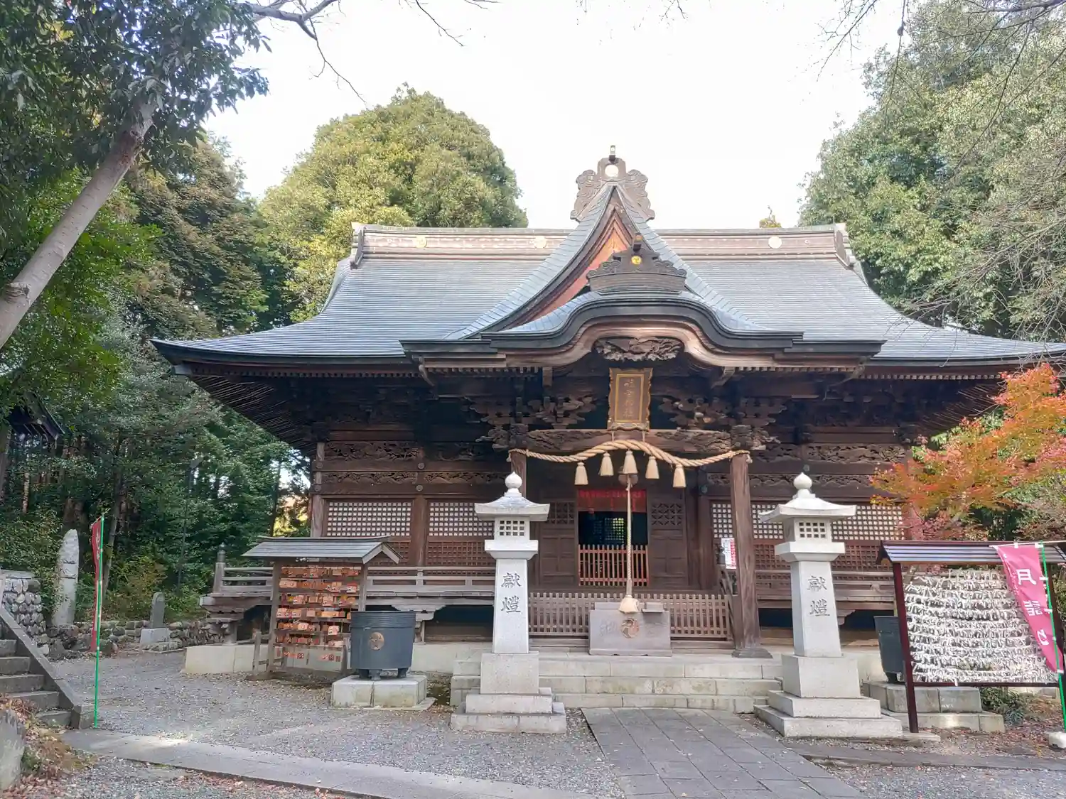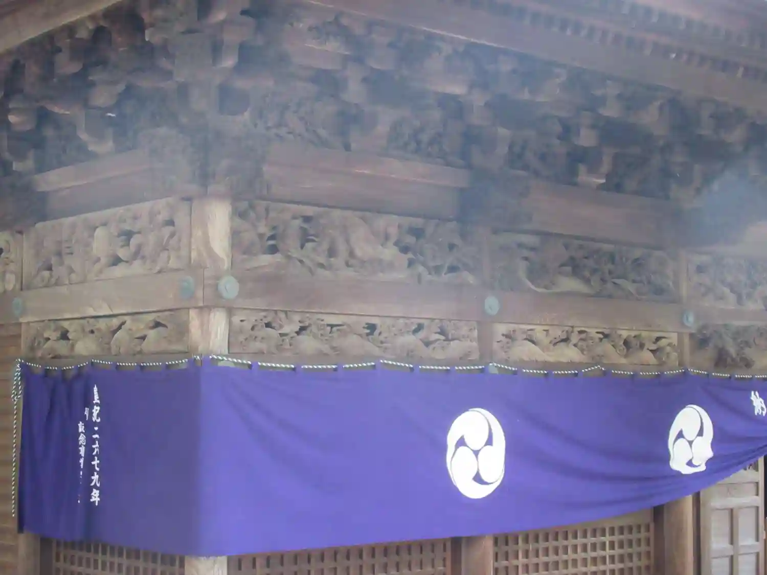 拝殿の欄間には彫刻が施されています。