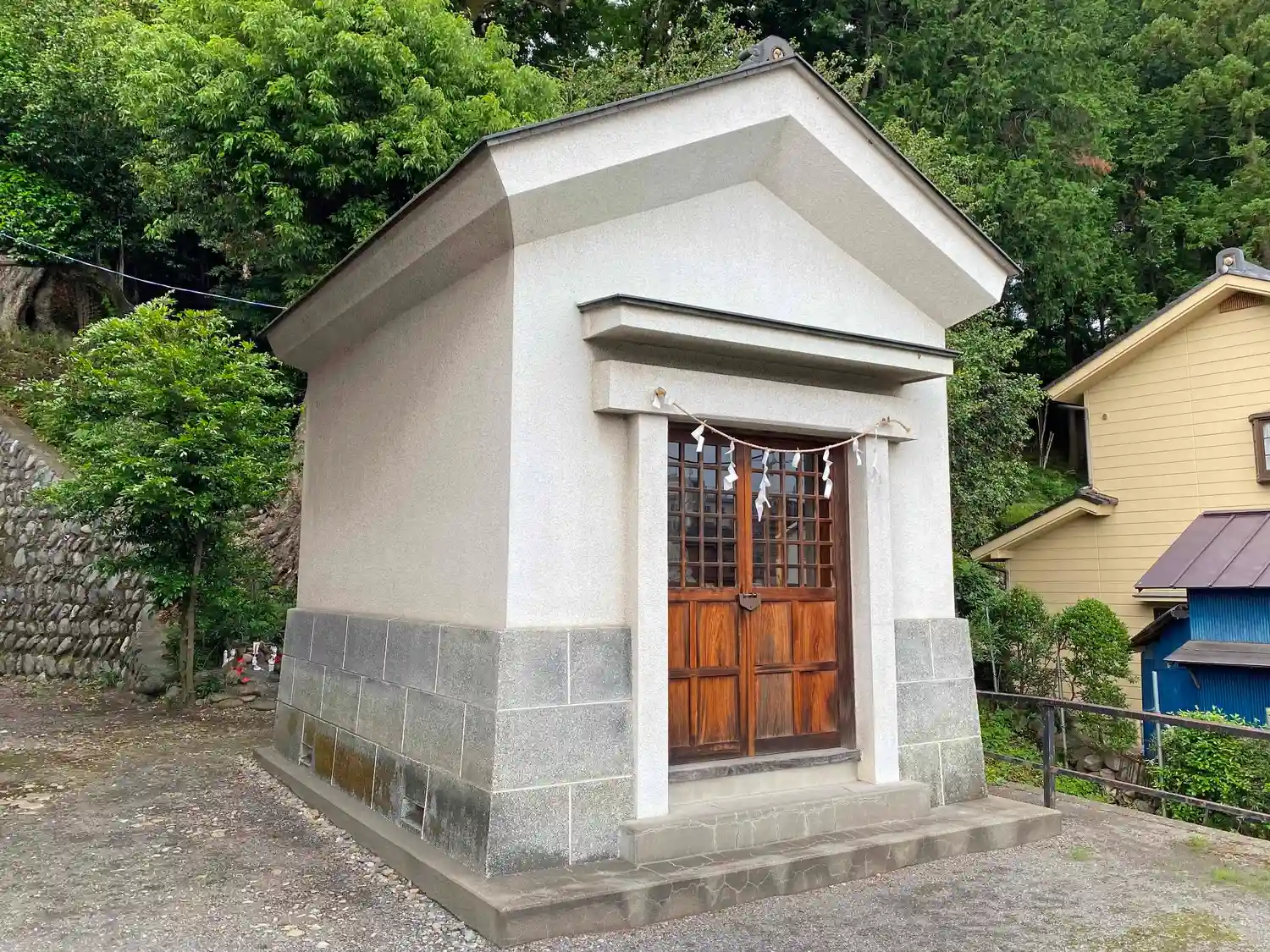 神明社の前の、公道を挟んで反対側にある<授与所>のような建物。