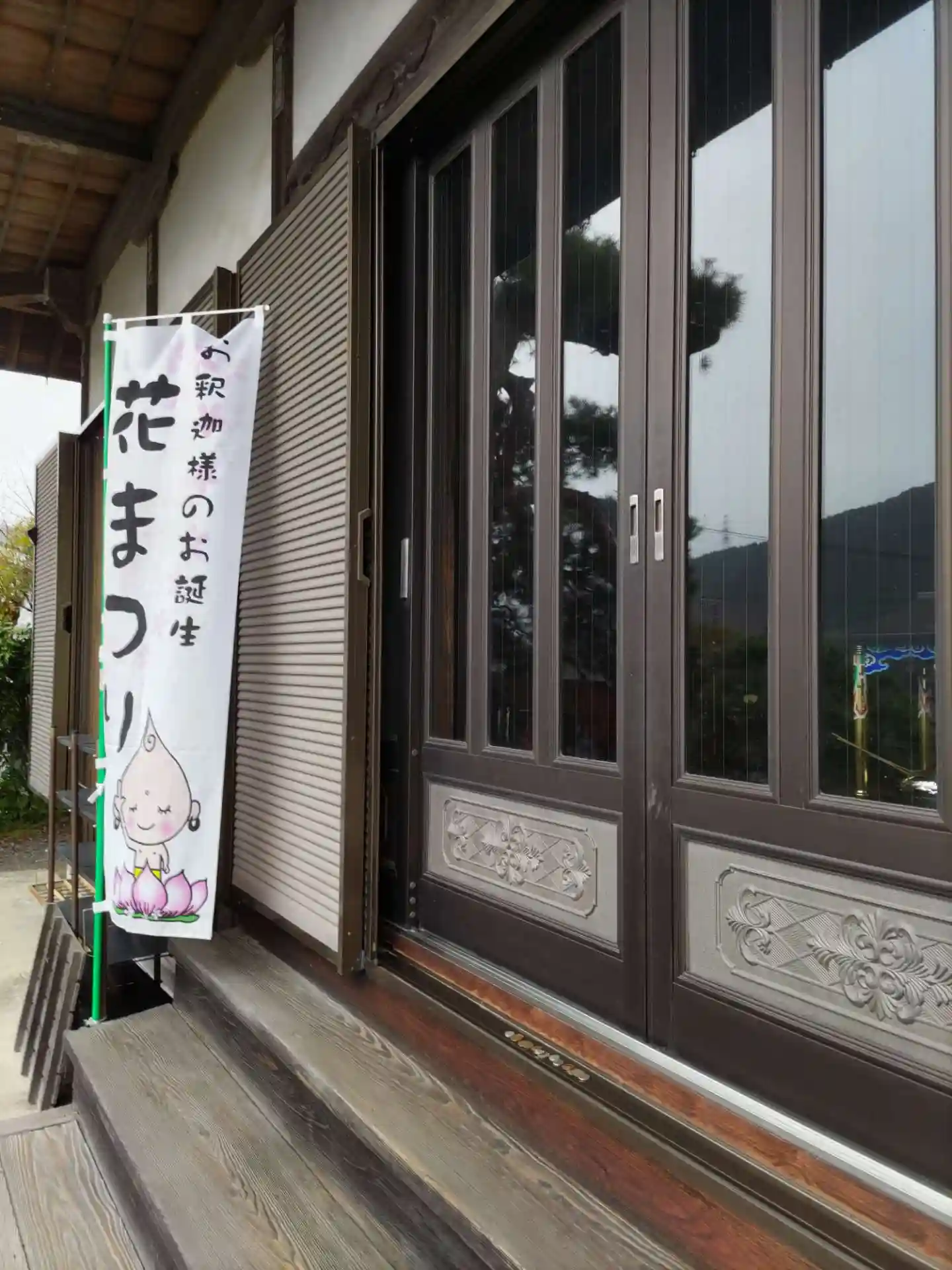本堂には、花まつり準備されていらっしゃる。檀家さんがいらっしゃるそうです。
