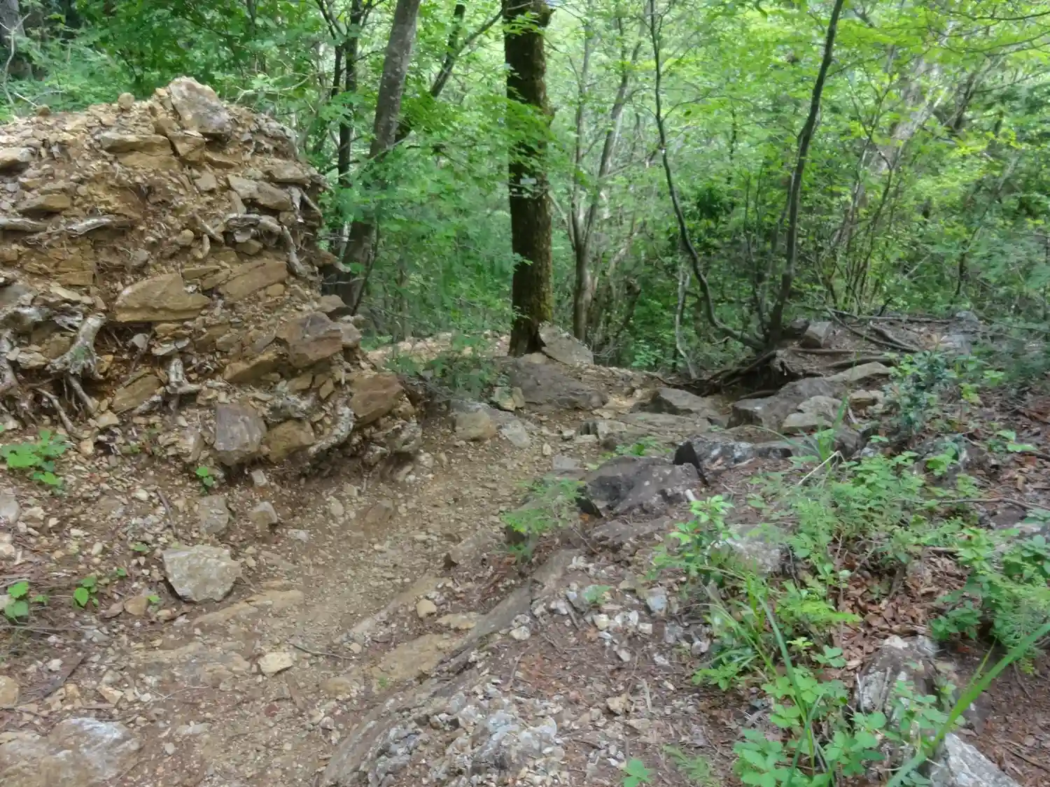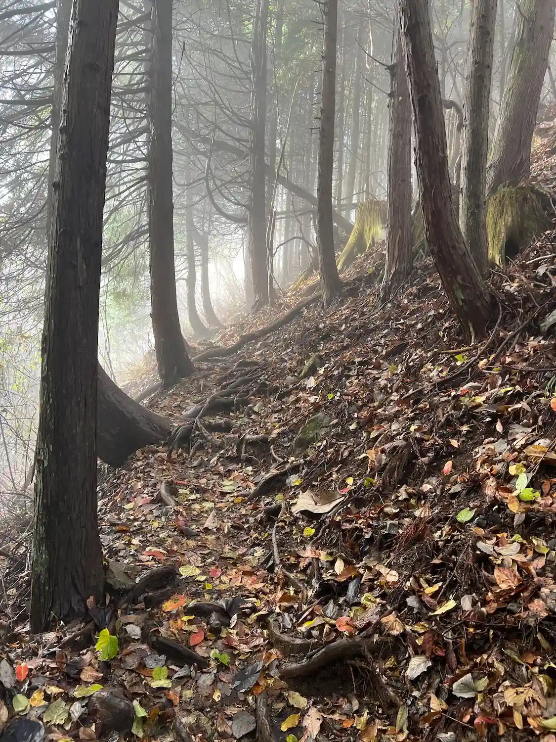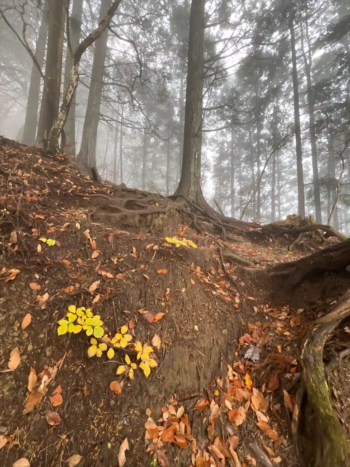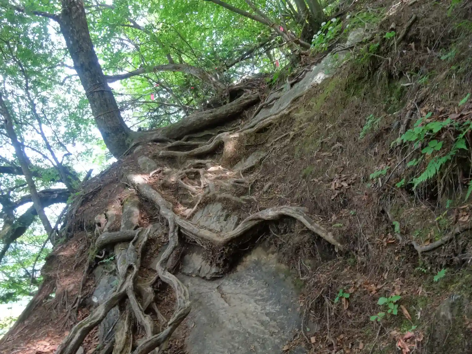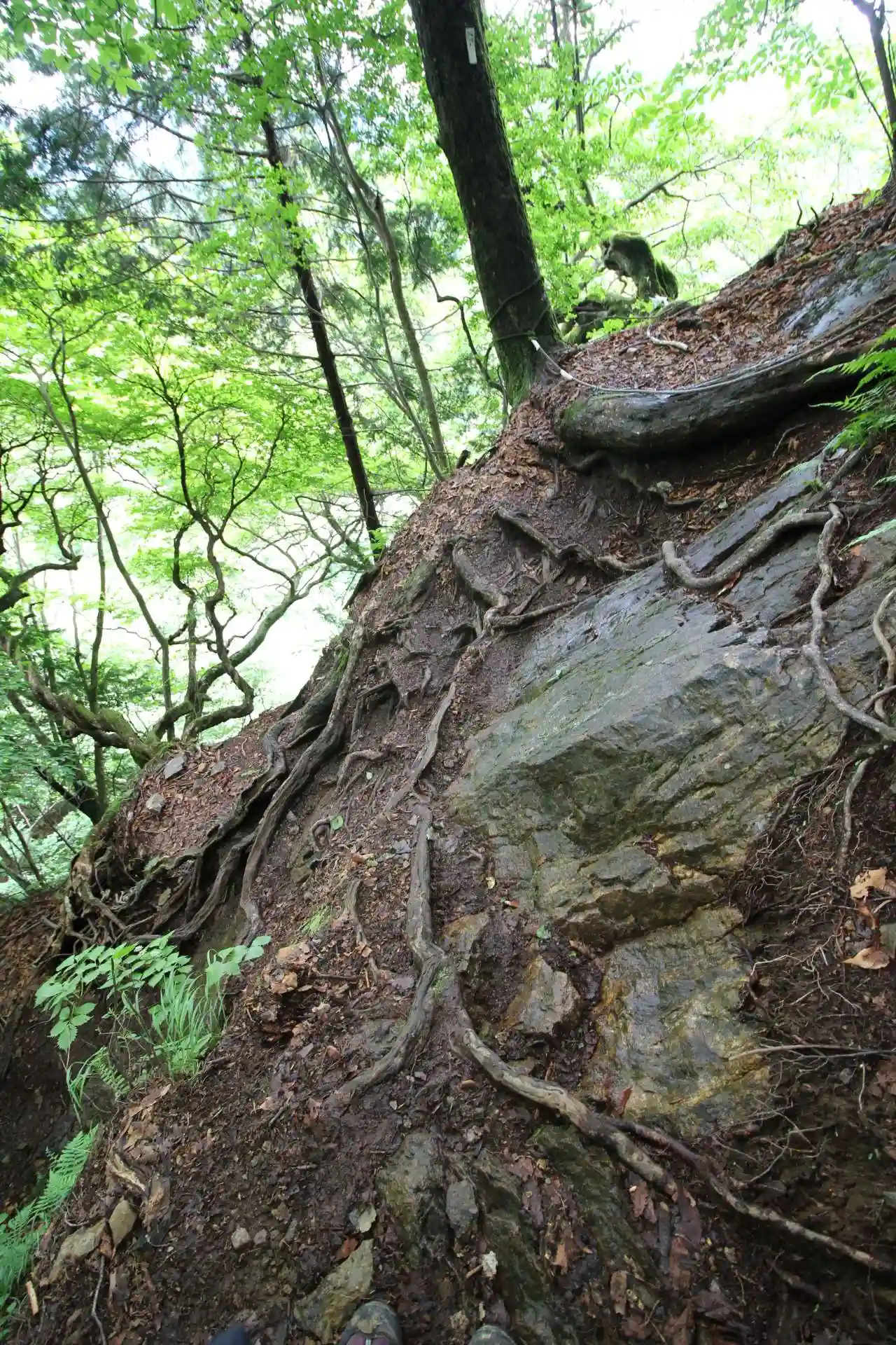 鎖場は葉っぱが多いので滑らないように