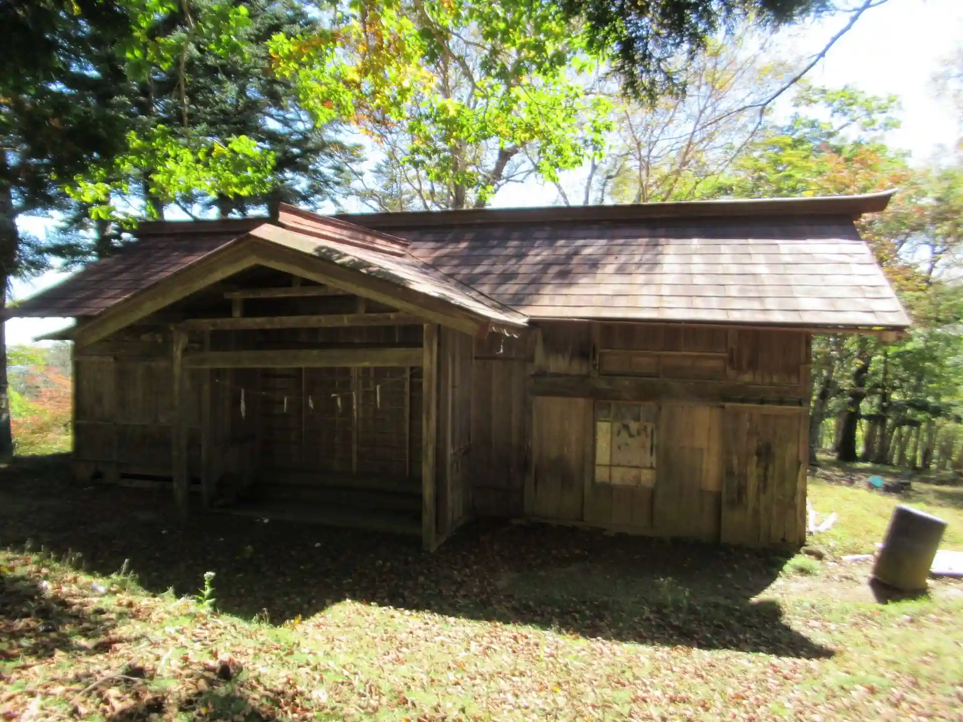 登拝口から1時間ほど登ると大日天神(おおひてんじん)と呼ばれる社が見えてきます。だいぶ荒れてしまっています。