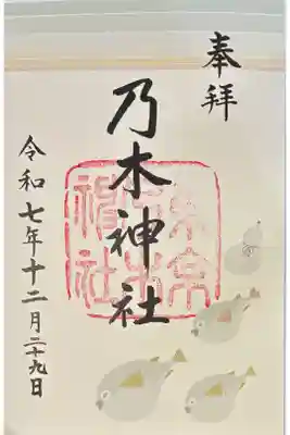 真ん中に乃木神社と書かれ、右下にナンテンの木のイラスト、真ん中に東京乃木神社の印が押されています。